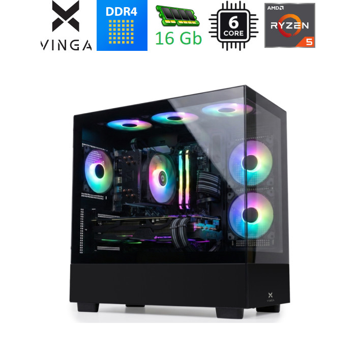 AMD Ryzen 5, 5500, 6 ядер, 12 потоків, Частота, ГГц - 3.6, Частота Boost, ГГц - 4.2, AMD B550, GPU - дискретна, GeForce RTX 5050, GPU - 8 ГБ, RAM - 16 ГБ, SSD - 1 TB, 1 х Audio combo port, 2 х DisplayPort, 1 x PS/2, 1 x USB 3.0, 5 x USB 2.0, 4 x USB 3.2 Gen1 Type-A, 2 х HDMI, 3 x Audio, 1 x RJ45, немає, PSU - 600 Вт