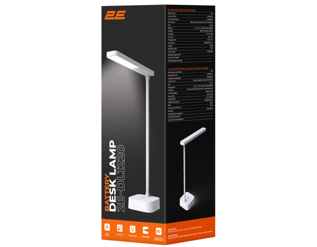 | Настільна лампа 2E-DL1220 – компактний і стильний аксесуар для будь-якого простору. Потужність 5 Вт забезпечує достатнє освітлення для щоденних завдань, а завдяки колірній температурі 5 000 K гарантовано природне біле світло, яке не напружує очі навіть упродовж тривалого часу. |