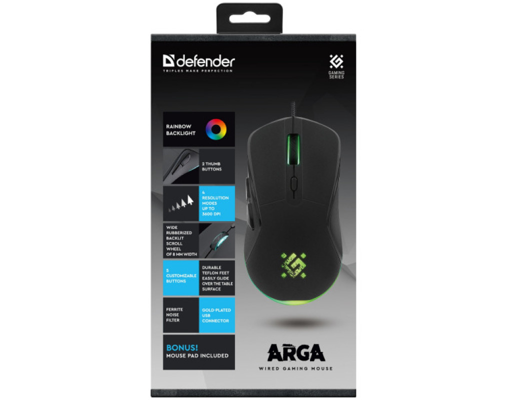 Геймерські, дротове, USB, оптичний, 3600 dpi, кількість кнопок - 5, 67 x 126 x 40 мм, 130 г