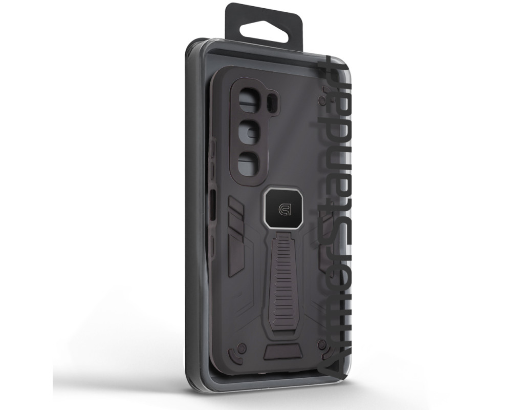 ArmorStandart Proover — це захисний чохол, створений для тих, хто шукає надійність, практичність і продумані деталі. Він забезпечує повноцінний захист смартфона, зберігаючи його функціональність та первісний стан у щоденному використанні. Конструкція поєднує два матеріали: м’який термопластичний поліуретан (TPU) ефективно поглинає удари та запобігає подряпинам, а зовнішній шар із полікарбонату (PC) захищає від механічних пошкоджень і потертостей. Посилені кути мінімізують ризик ушкоджень під час падінь, а блок камери повністю закритий, що забезпечує додатковий захист об’єктивів від подряпин і ударів. На спинці чохла вбудована металева пластина, яка дозволяє використовувати його з магнітними авто-тримачами, забезпечуючи комфорт і безпеку під час керування автомобілем. Чохол оснащений зручною відкидною підставкою, яка дозволяє встановити смартфон горизонтальному або вертикальному положенні для комфортного перегляду відео, відеодзвінків або роботи з контентом. Матове покриття приємне на дотик, стійке до відбитків пальців і подряпин. Особливості: