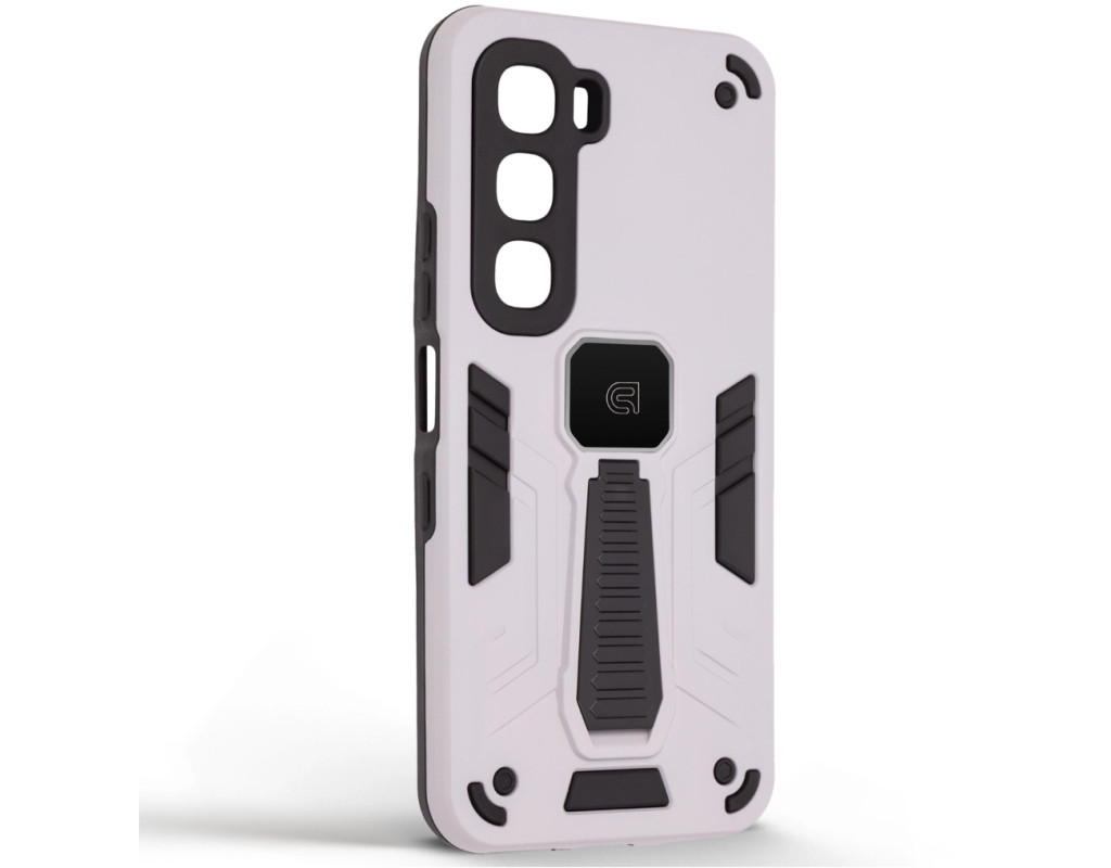 ArmorStandart Proover — це захисний чохол, створений для тих, хто шукає надійність, практичність і продумані деталі. Він забезпечує повноцінний захист смартфона, зберігаючи його функціональність та первісний стан у щоденному використанні. Конструкція поєднує два матеріали: м’який термопластичний поліуретан (TPU) ефективно поглинає удари та запобігає подряпинам, а зовнішній шар із полікарбонату (PC) захищає від механічних пошкоджень і потертостей. Посилені кути мінімізують ризик ушкоджень під час падінь, а блок камери повністю закритий, що забезпечує додатковий захист об’єктивів від подряпин і ударів. На спинці чохла вбудована металева пластина, яка дозволяє використовувати його з магнітними авто-тримачами, забезпечуючи комфорт і безпеку під час керування автомобілем. Чохол оснащений зручною відкидною підставкою, яка дозволяє встановити смартфон горизонтальному або вертикальному положенні для комфортного перегляду відео, відеодзвінків або роботи з контентом. Матове покриття приємне на дотик, стійке до відбитків пальців і подряпин. Особливості: