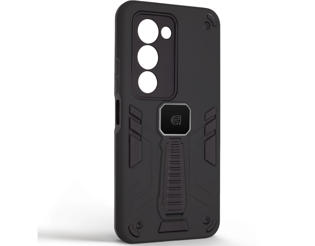 ArmorStandart Proover — це захисний чохол, створений для тих, хто шукає надійність, практичність і продумані деталі. Він забезпечує повноцінний захист смартфона, зберігаючи його функціональність та первісний стан у щоденному використанні. Конструкція поєднує два матеріали: м’який термопластичний поліуретан (TPU) ефективно поглинає удари та запобігає подряпинам, а зовнішній шар із полікарбонату (PC) захищає від механічних пошкоджень і потертостей. Посилені кути мінімізують ризик ушкоджень під час падінь, а блок камери повністю закритий, що забезпечує додатковий захист об’єктивів від подряпин і ударів. На спинці чохла вбудована металева пластина, яка дозволяє використовувати його з магнітними авто-тримачами, забезпечуючи комфорт і безпеку під час керування автомобілем. Чохол оснащений зручною відкидною підставкою, яка дозволяє встановити смартфон горизонтальному або вертикальному положенні для комфортного перегляду відео, відеодзвінків або роботи з контентом. Матове покриття приємне на дотик, стійке до відбитків пальців і подряпин. Особливості: