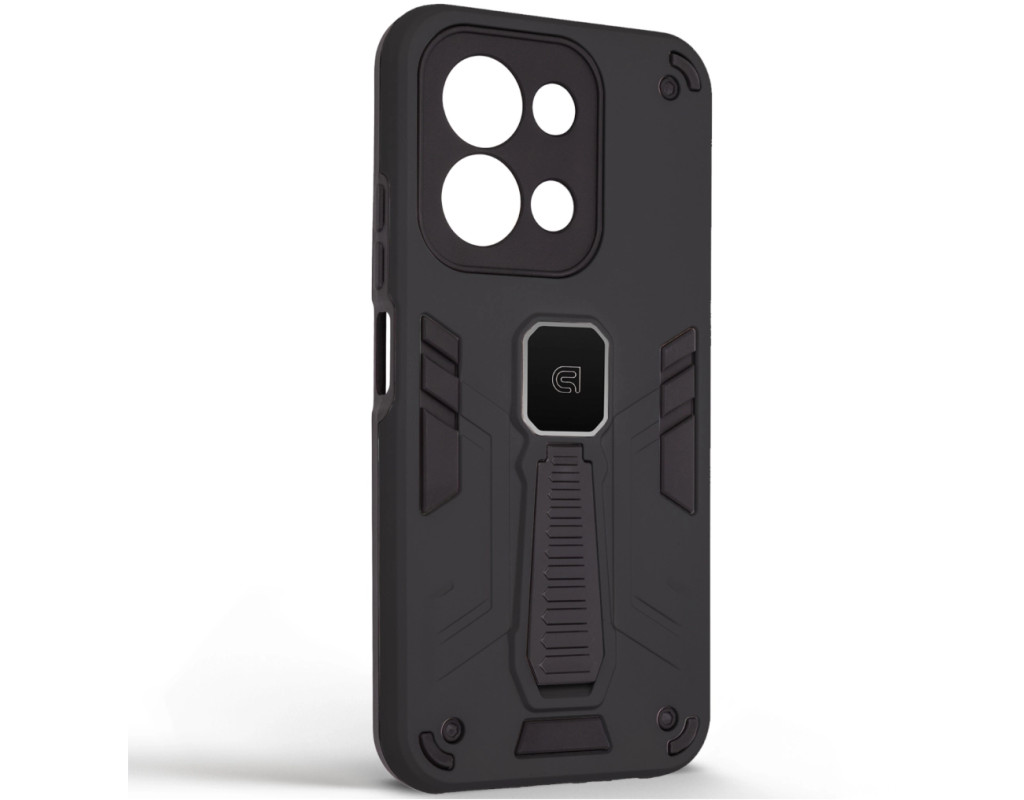 ArmorStandart Proover — це захисний чохол, створений для тих, хто шукає надійність, практичність і продумані деталі. Він забезпечує повноцінний захист смартфона, зберігаючи його функціональність та первісний стан у щоденному використанні. Конструкція поєднує два матеріали: м’який термопластичний поліуретан (TPU) ефективно поглинає удари та запобігає подряпинам, а зовнішній шар із полікарбонату (PC) захищає від механічних пошкоджень і потертостей. Посилені кути мінімізують ризик ушкоджень під час падінь, а блок камери повністю закритий, що забезпечує додатковий захист об’єктивів від подряпин і ударів. На спинці чохла вбудована металева пластина, яка дозволяє використовувати його з магнітними авто-тримачами, забезпечуючи комфорт і безпеку під час керування автомобілем. Чохол оснащений зручною відкидною підставкою, яка дозволяє встановити смартфон горизонтальному або вертикальному положенні для комфортного перегляду відео, відеодзвінків або роботи з контентом. Матове покриття приємне на дотик, стійке до відбитків пальців і подряпин. Особливості: