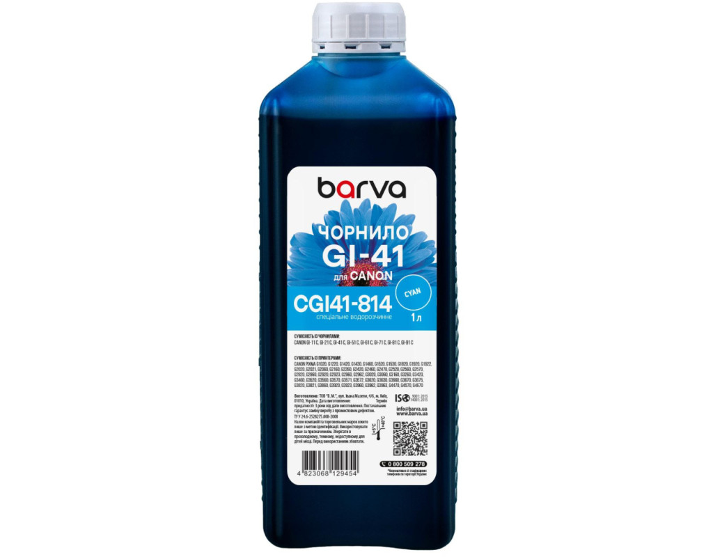 Більшість з нас чули, що на відміну від лазерної техніки, яка формує зображення за допомогою тонера, струменева техніка використовує для друку спеціальні чорнила (краска для принтерів). Чорнило сумісне для Canon GI-41 C спеціальне 1 л, водорозчинне, блакитне Barva (CGI41-814) використовується переважно для заправки ПЗК та СБПЧ. Чорнила CGI41-814 Barva мають офіційну гарантію від виробника – АТ000953. При виборі чорнила для принтерів Вам також необхідно звернути увагу на колір картриджа, який плануєте заправляти. Дані чорнила Barva мають колір – cyan (блакитний). Виробник гарантує безперебійну роботу чорнил протягом всього терміну використання, який складає – 3 роки. Тип чорнил CGI41-814 Barva – Водорозчинні. Українська компанія ТОВ «В.М.» займається виробництвом чорнил під торговою маркою Barva вже багато років. На базі власної лабораторії відбувається як розробка нових формул, так і неперервний контроль якості продукції, що випускається. При виробництві чорнил виробник слідує стандартам ISO 9001:2015 та ISO 14001:2015. Чорнила Canon ТМ Barva повністю сумісні не тільки з чорнилами ТМ Patron, але й з чорнилами інших виробників. Для досягнення оптимального результату в передачі кольору та стійкості до світла ми рекомендуємо використовувати комбінацію – Фотопапір для струменевого друкуBarva + чорнила Barva. Дана фарба для принтера Barva має фасовку – 1 л: Фасовки 1 кг/1 л/18 кг будуть зручними для сервісних центрів або користувачів, які часто стикаються з необхідністю заправки картриджа або резервуарів друкуючих пристроїв.. Також рекомендуємо Вам звернути увагу на ще один варіант фасовки для сервісних центрів– Service-Pack. |