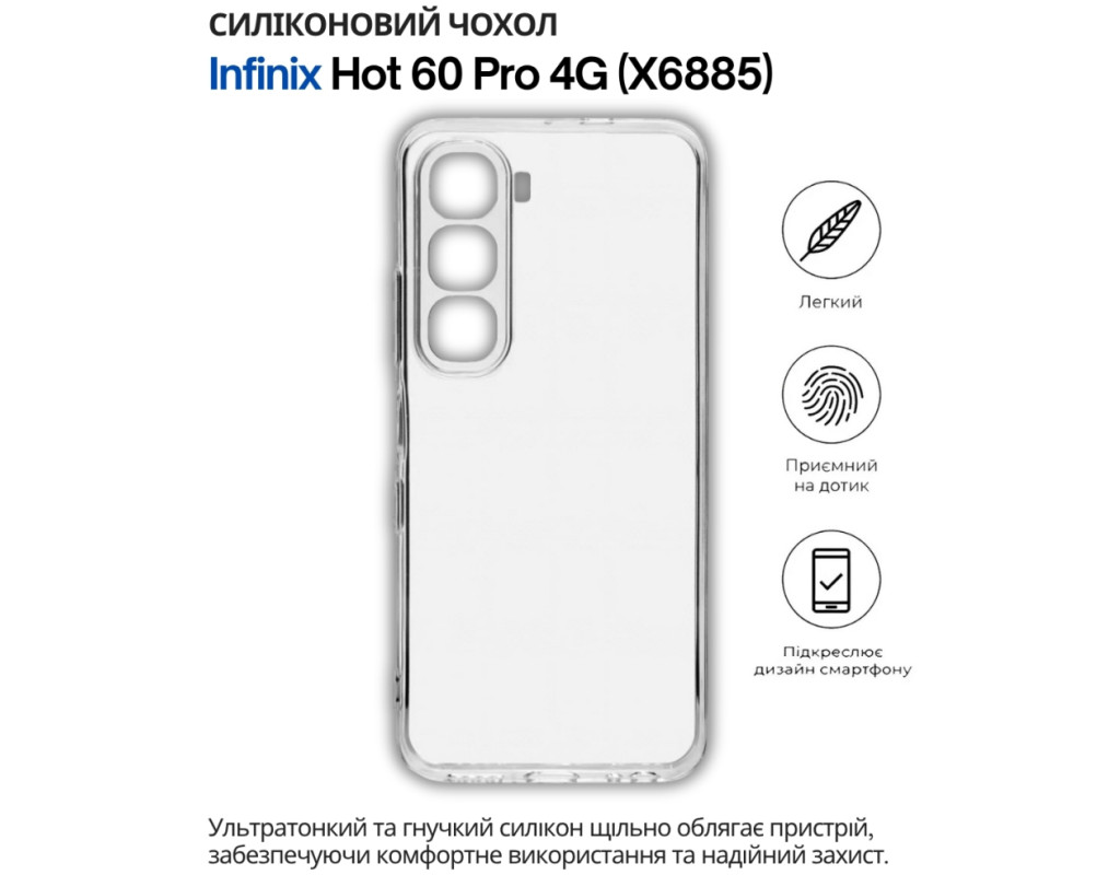 | "Тонкий і еластичний силіконовий чохол забезпечує надійний захист вашого смартфона від механічних пошкоджень, запобігаючи появі подряпин на корпусі. Завдяки високій якості матеріалу, чохол зберігає свою цілісність — він не рветься та не тріскається навіть при тривалому використанні. Чохол легко встановлюється, щільно прилягає до поверхні смартфона, не залишаючи повітряних зазорів, які могли б накопичувати пил, бруд або вологу. Легкий і непомітний, він не додає зайвого об'єму чи ваги вашому пристрою, забезпечуючи надійний захист від ударів, пошкоджень і вологи. Усі вирізи в чохлі точно відповідають роз'ємам і функціональним кнопкам смартфона, що гарантує зручне користування в будь-яких умовах. Силіконове покриття не ковзає, щільно облягає металевий корпус телефону та не перешкоджає доступу до роз'ємів для зарядки, USB-кабелю, гарнітури чи сканера відбитків пальців. Цей силіконовий чохол стане ідеальним вибором для тих, хто шукає стильний і практичний аксесуар для свого смартфона." |