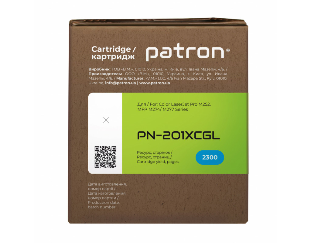 Картридж Patron HP CLJ CF401X для M252/M274/M277 Cyan, GREEN Label (PN-201XCGL)