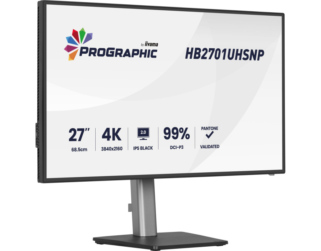 Працюйте з упевненістю на 27-дюймовому моніторі ProGraphic HB2701 з роздільною здатністю 4K UHD, розробленому для дизайнерів, фотографів і творців контенту, яким потрібна безкомпромісна чіткість зображення. Завдяки технології IPS Black 2.0 монітор забезпечує глибший контраст і насичений чорний колір, гарантуючи, що кожна тінь і кожна деталь відображаються з винятковою точністю. Покриття 99% колірного простору DCI-P3 та підтверджена Pantone точність передавання кольорів гарантують бездоганний вигляд ваших робіт у друці, відео та цифрових форматах. Антиблікове покриття AGLR мінімізує відбиття, дозволяючи зосередитися на роботі як у яскраво освітленій студії, так і в напівтемному робочому просторі. Усі ці передові можливості допомагають повною мірою розкрити ваше творче бачення та майстерність. Розроблений для підвищення продуктивності, HB2701 оснащений підставкою з регулюванням висоти до 150 мм, док-станцією USB-C та вбудованим KVM-перемикачем, що забезпечує зручну й сучасну конфігурацію для легкої багатозадачності. Більше інформації — менше коригувань Технологія IPS Black 2.0 підвищує контрастність, поглиблює чорний колір і забезпечує стабільну передачу кольорів у широкому діапазоні кутів огляду. Ви бачите більше деталей у затінених ділянках і зменшуєте потребу в корекціях, працюючи над творчими завданнями з повною впевненістю. Перевірено Pantone для гарантованої точності кольорів Монітори ProGraphic пройшли валідацію Pantone, що підтверджує точне відтворення кольорів системи Pantone Matching System, широко застосовуваної в дизайні та поліграфії. Це оптимізує робочий процес, зменшує кількість правок і дає професіоналам упевненість у точності кожного відтінку. Точна передача кольорів у будь-якому середовищі Завдяки 99% охопленню DCI-P3 монітори ProGraphic забезпечують точність, необхідну для будь-якого візуального проєкту. Цифровий контент, друк чи кіно — ваша робота виглядатиме саме так, як ви задумали, і аудиторія побачить те саме, що й ви. Покращена контрастність для точніших рішень Коефіцієнт контрастності 3000:1 дозволяє відображати найтонші тіні та делікатні тональні переходи. Ви бачите більше деталей у кадрі, що спрощує та підвищує точність рішень під час редагування й кольорокорекції. Жодна деталь не залишиться непоміченою. Зменшене відблискування для більшого комфорту Удосконалений поляризаційний шар AGLR (антиблікове покриття з низьким коефіцієнтом відбиття) ефективніше знижує відблиски, ніж традиційні AG-покриття. Він забезпечує чіткішу видимість і комфортний перегляд навіть у яскраво освітлених приміщеннях або під час тривалих робочих сесій. Роздільна здатність 4K для повного контролю творчого процесу Дисплеї ProGraphic 4K забезпечують виняткову деталізацію, дозволяючи бачити найдрібніші елементи без постійного масштабування. Ідеальне рішення для роботи з великоформатними зображеннями або складними таймлайнами — кожен піксель чіткий, що допомагає працювати швидше й точніше. Широкі кути огляду, створені для реальних робочих сценаріїв На відміну від стандартних IPS-панелей, IPS Black 2.0 зберігає контрастність і точність кольорів навіть під широкими кутами огляду. Незалежно від того, чи використовуєте ви кілька моніторів, чи проводите презентації для клієнтів, зображення залишається однорідним і чітким. Створений так, як працюють професіонали творчих галузей. Спрості