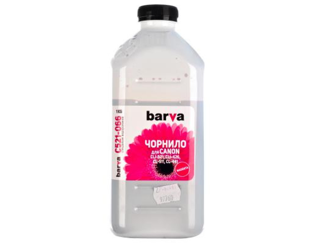 BARVA CANON CLI-521/CL-511 1кг MAGENTA (C521-066) являє собою якісне чорнило, яке відрізняється високою світло - і водостійкістю, широкою кольоровою гамою і хорошою чіткістю одержуваних відбитків. Зображення надовго збереже яскравість, завдяки впровадженню у виробництво чорнил новітніх наукових розробок.