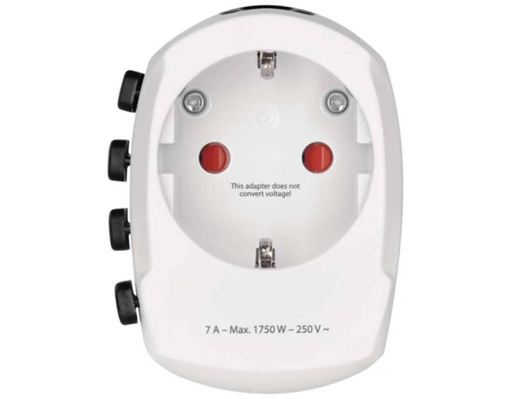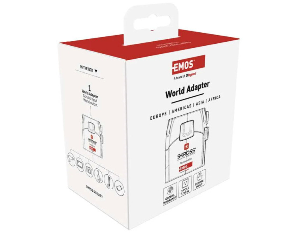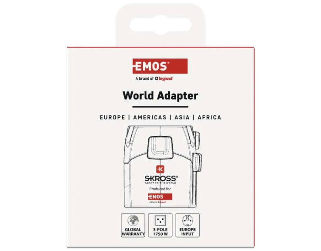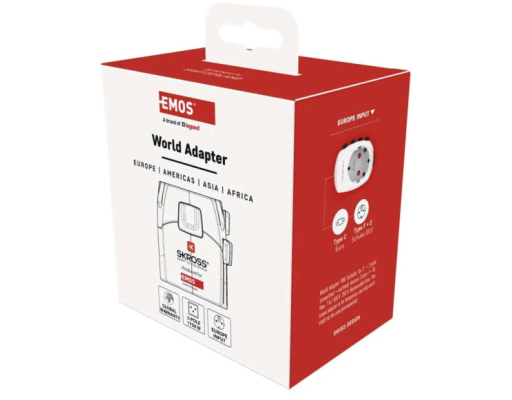Універсальний адаптер від чеського виробника Emos для Америки, Африки та Азії, білий. Адаптер Pro+ підходить для більшості двополюсних і триполюсних розеток із заземленням класу захисту I та II. Призначений для європейців, які подорожують за кордон: до Америки, Азії, Австралії, Нової Зеландії, Китаю, Африки, Близького Сходу, Великої Британії, Швейцарії, Італії, Гонконгу, Індії тощо. Дозволяє безпечно підключати портативні електроприлади в будь-якій точці світу (фен, праска, чайник, ноутбук тощо). Окрім приладів із заземленням, адаптер також зручно використовувати для підключення пристроїв із плоскою вилкою, таких як мобільні телефони, GPS-навігатори та цифрові камери. Туристичний партнер Збираєтеся у відпустку за кордон? Не забудьте взяти з собою дорожній адаптер, щоб не стикнутися з різними типами розеток і легко під'єднати пристрій до електромережі. Адаптер підходить і для потужніших пристроїв, таких як ноутбук або фен (напруга / струм: 250 В змінного струму / 7 А макс.). Адаптер, розроблений у Швейцарії, гарантує безпечну якість у подорожах. 3 типи штепсельних вилок Незалежно від того, чи має ваш прилад швейцарську або французьку вилку, туристичний адаптер дозволяє безперешкодно під'єднатися до електромережі. Адаптер призначений для роботи з трьома типами вилок: двополюсною вилкою EURO (тип C), триполюсною французькою вилкою SCHUKO (тип E) та триполюсною вилкою SCHUKO (тип F). 6 типів розеток Незалежно від того, куди ви прямуєте — до США, Австралії, Китаю чи будь-якої з понад 100 країн світу, з універсальним адаптером P0056N ви будете повністю готові. Адаптер підтримує 6 типів розеток: тип B (США), тип G (Велика Британія), тип I (Австралія / Китай), тип J (Швейцарія), тип L (Італія), тип N (Бразилія). Основні параметри: