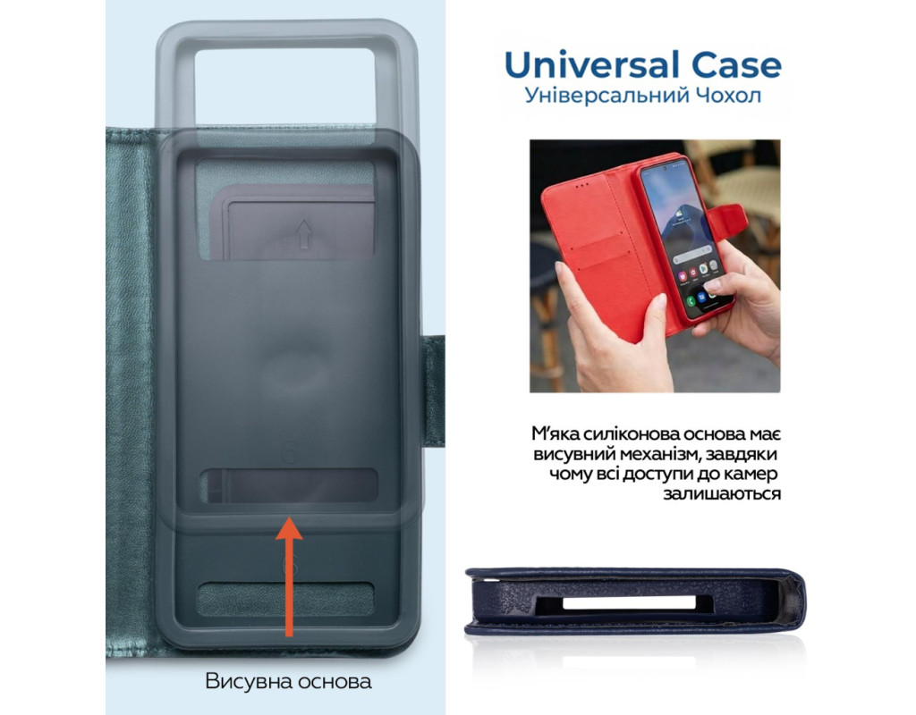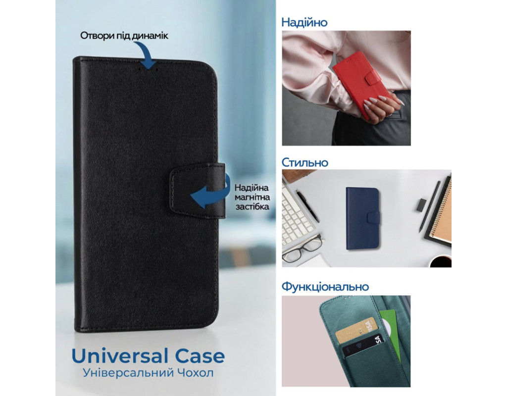| Чохол-книжка XOKO для смартфона 6.0–6.2″ (універсальний), чорний ? Бренд: XOKO ? Тип: чохол-книжка (Book Case) ? Сумісність: універсальний — підходить для смартфонів з діагоналлю екрану 6.0–6.2 дюйма ? Колір: чорний ? Матеріал: якісний шляхетний матеріал/еко-шкіра (міцний захисний корпус) ? Функціональність: • повний захист дисплея та корпусу від подряпин, пилу та механічних пошкоджень • чохол закривається як книжка, повністю огортаючи телефон • забезпечує зручний захист при щоденному використанні ? Дизайн: стильний, стриманий чорний колір — підходить для будь-якого смартфона та образу ? Переваги: • універсальний формат — один чохол для різних моделей телефона • захищає екран під час транспортування • можна використовувати як підставку для перегляду відео • комфортно лежить у руці та не збільшує суттєво розміри телефону ? Ідеально підходить для тих, хто шукає надійний базовий захист смартфона з елегантним дизайном, не прив’язуючись до конкретної моделі телефону. |