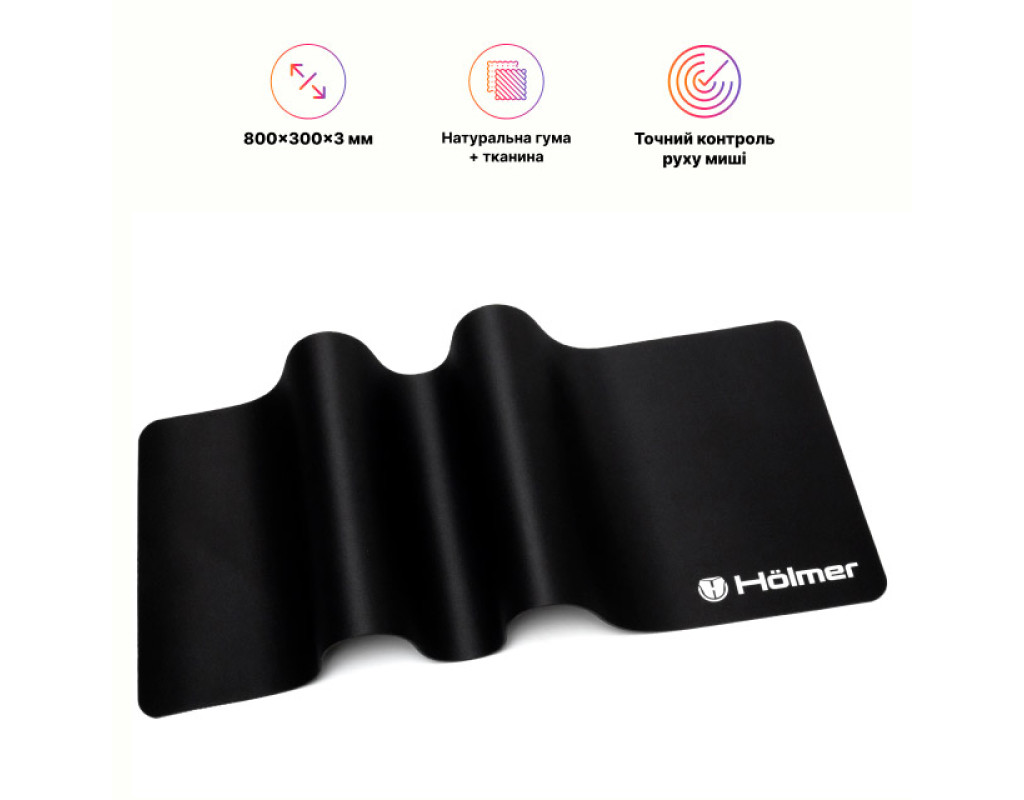 Hölmer OMP-05 — це універсальний настільний килимок (Desk Mat), який пропонує величезний простір для організації вашого робочого місця. Завдяки розміру 800 х 300 мм, він легко вміщує і клавіатуру, і мишу, забезпечуючи єдність стилю, комфорт та стабільність для обох пристроїв. Товщина 3 мм у поєднанні з вагою 434 г та натуральною гумовою основою гарантує повну відсутність ковзання та зсувів. М’яка гума також слугує комфортною, ергономічною підкладкою для передпліччя та зап’ястя. Килимок зберігає якість поверхні типу Control з високоякісного мультиспандекса. Це плетіння забезпечує помірне тертя для хірургічної точності керування курсором — ключова перевага для графічних дизайнерів та гравців. Виготовлений із міцних матеріалів, OMP-05 стійкий до зносу та легко чиститься. Він підходить для будь-якого типу миші (оптичної, лазерної) і є універсальним рішенням для організації столу. |