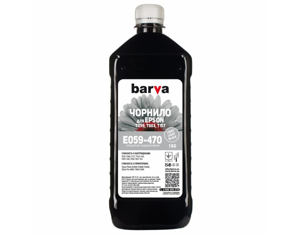 Чорнило Barva EPSON R2400 LIGHT LIGHT BLACK 1 кг T0599 (E059-470)