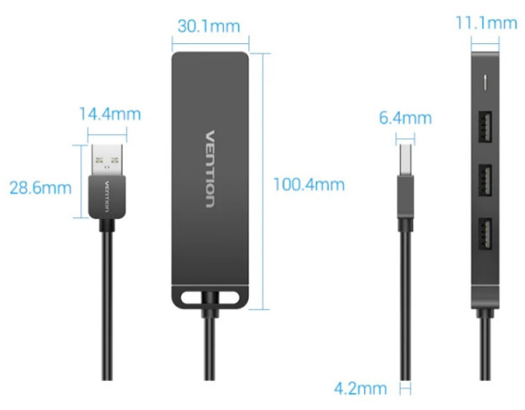 Концентратор Vention USB 2.0 to 4xUSB 2.0 black (CHMBB)