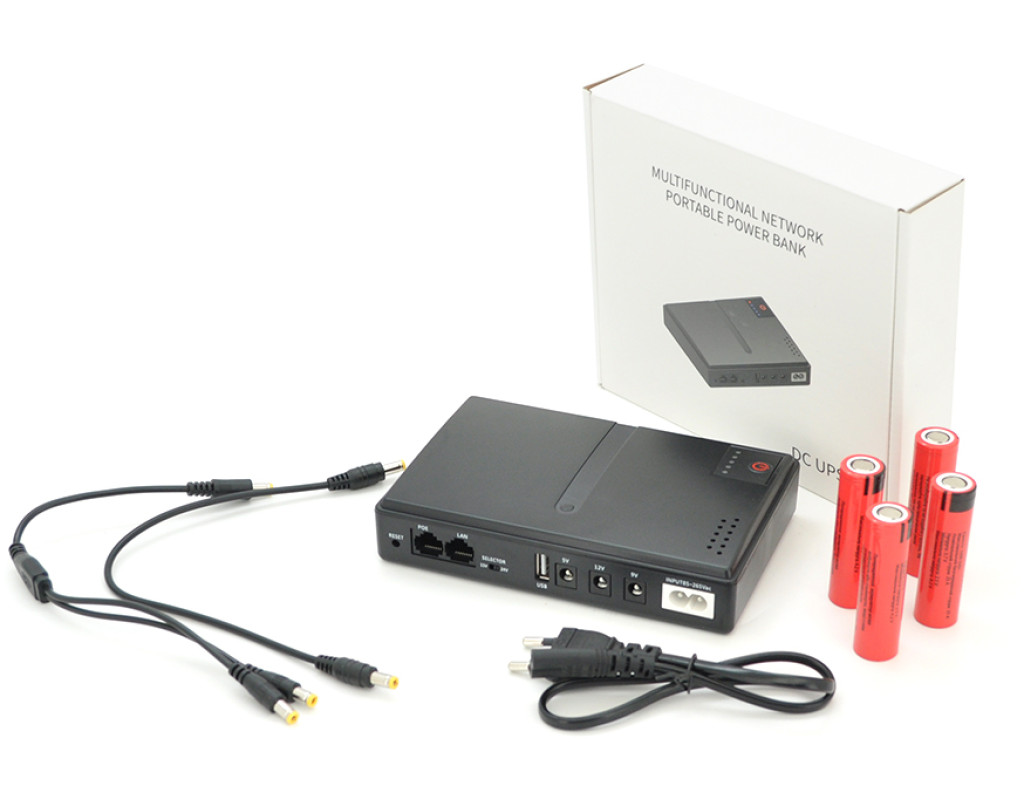 ДБЖ UPS-18W DC1018P YT45454 для роутерів / комутаторів / PON / POE-430, 5 / / 9 / 12V, 1A, 12800MAh(знімні 4*3200MAh), Black, BOX