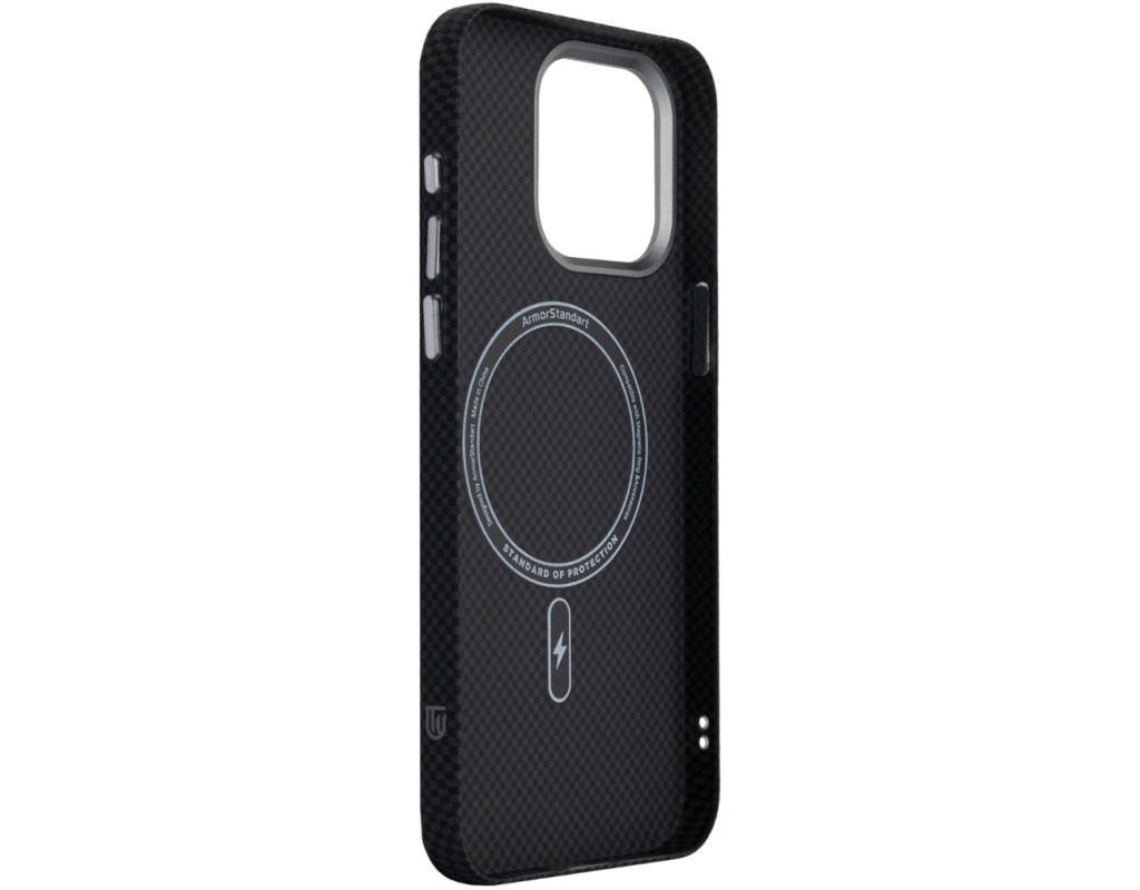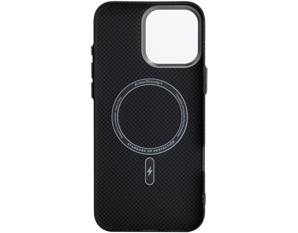 Чохол ArmorStandart LikeCarbon2 MagCase для Apple поєднує у собі міцність, захист і сучасне оформлення. Корпус виготовлений із якісного матового полікарбонату з покриттям, що імітує карбонове волокно. Міцні алюмінієві кнопки та рамка навколо камери підвищують загальну зносостійкість аксесуара. Чохол забезпечує надійний захист смартфона від ударів, падінь, подряпин та інших механічних пошкоджень. Підняті краї навколо блоку камери захищають об’єктиви від контакту з поверхнями, що важливо для збереження якості фото- та відеозйомки. Вбудовані магніти стандарту N52 дозволяють використовувати аксесуар з MagSafe та іншими сумісними пристроями та тримачами. ArmorStandart LikeCarbon2 MagCase — це практичне рішення для повсякденного захисту вашого смартфона. Особливості: