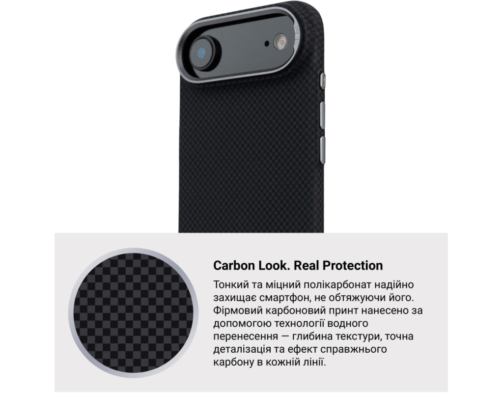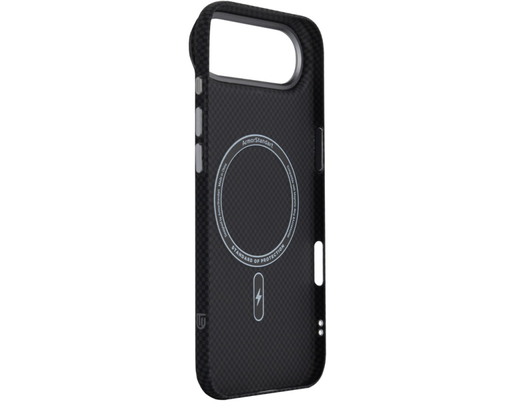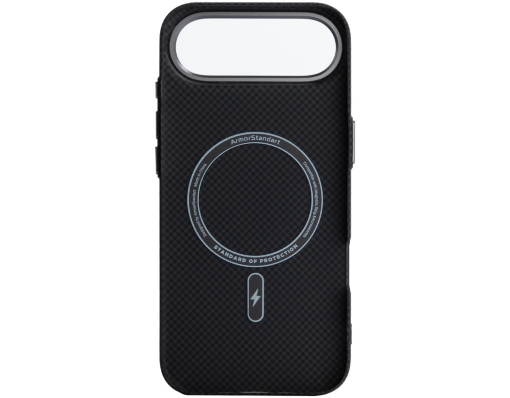 Чохол ArmorStandart LikeCarbon2 MagCase для Apple поєднує у собі міцність, захист і сучасне оформлення. Корпус виготовлений із якісного матового полікарбонату з покриттям, що імітує карбонове волокно. Міцні алюмінієві кнопки та рамка навколо камери підвищують загальну зносостійкість аксесуара. Чохол забезпечує надійний захист смартфона від ударів, падінь, подряпин та інших механічних пошкоджень. Підняті краї навколо блоку камери захищають об’єктиви від контакту з поверхнями, що важливо для збереження якості фото- та відеозйомки. Вбудовані магніти стандарту N52 дозволяють використовувати аксесуар з MagSafe та іншими сумісними пристроями та тримачами. ArmorStandart LikeCarbon2 MagCase — це практичне рішення для повсякденного захисту вашого смартфона. Особливості:
