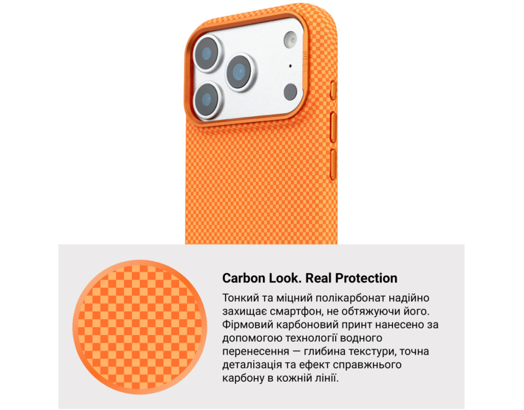 Чохол ArmorStandart LikeCarbon2 MagCase для Apple поєднує у собі міцність, захист і сучасне оформлення. Корпус виготовлений із якісного матового полікарбонату з покриттям, що імітує карбонове волокно. Міцні алюмінієві кнопки та рамка навколо камери підвищують загальну зносостійкість аксесуара. Чохол забезпечує надійний захист смартфона від ударів, падінь, подряпин та інших механічних пошкоджень. Підняті краї навколо блоку камери захищають об’єктиви від контакту з поверхнями, що важливо для збереження якості фото- та відеозйомки. Вбудовані магніти стандарту N52 дозволяють використовувати аксесуар з MagSafe та іншими сумісними пристроями та тримачами. ArmorStandart LikeCarbon2 MagCase — це практичне рішення для повсякденного захисту вашого смартфона. Особливості: