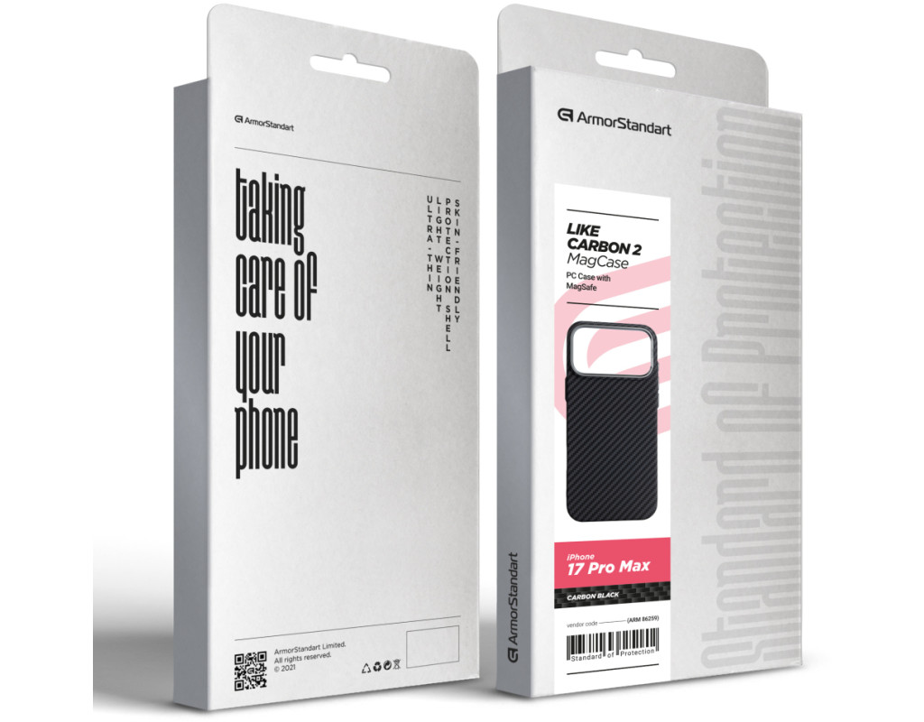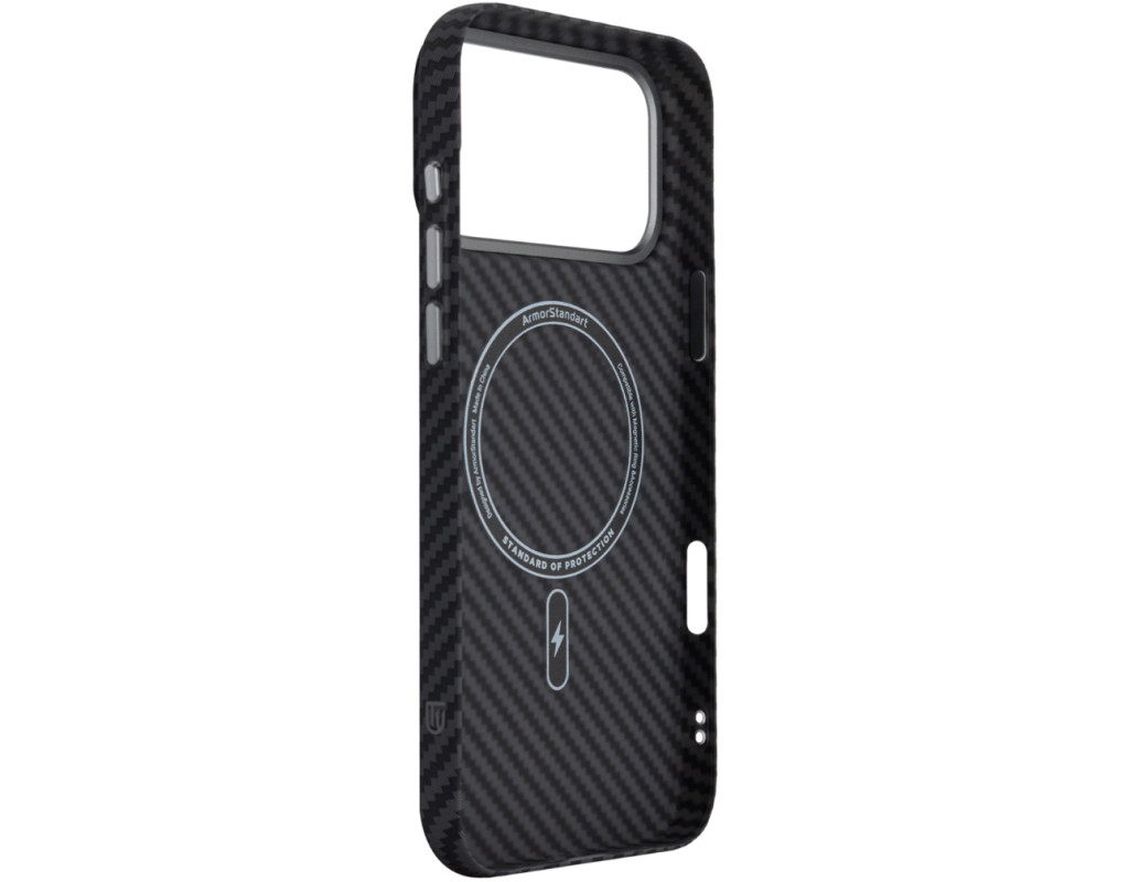 Чохол ArmorStandart LikeCarbon2 MagCase для Apple поєднує у собі міцність, захист і сучасне оформлення. Корпус виготовлений із якісного матового полікарбонату з покриттям, що імітує карбонове волокно. Міцні алюмінієві кнопки та рамка навколо камери підвищують загальну зносостійкість аксесуара. Чохол забезпечує надійний захист смартфона від ударів, падінь, подряпин та інших механічних пошкоджень. Підняті краї навколо блоку камери захищають об’єктиви від контакту з поверхнями, що важливо для збереження якості фото- та відеозйомки. Вбудовані магніти стандарту N52 дозволяють використовувати аксесуар з MagSafe та іншими сумісними пристроями та тримачами. ArmorStandart LikeCarbon2 MagCase — це практичне рішення для повсякденного захисту вашого смартфона. Особливості: