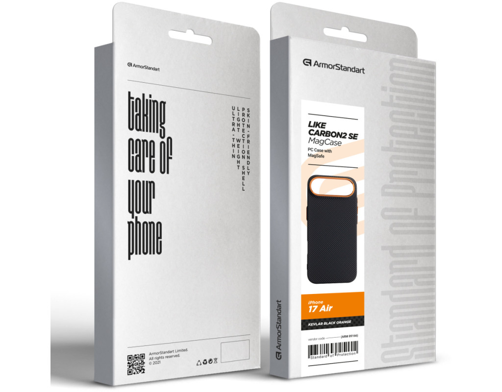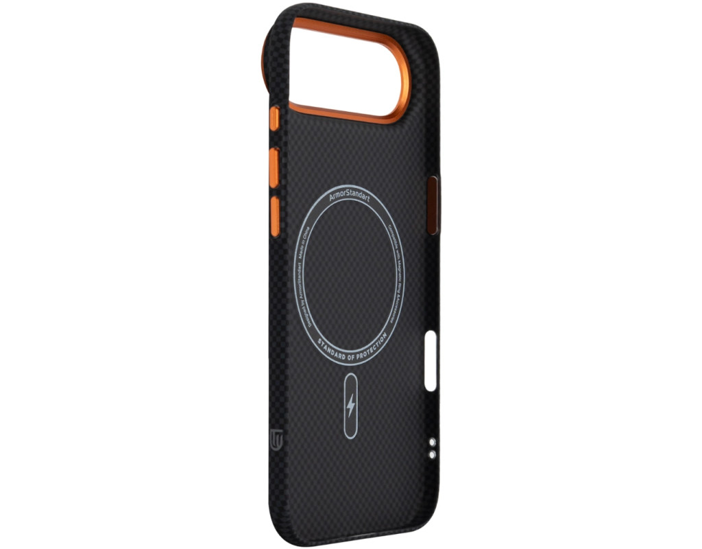 Чохол ArmorStandart LikeCarbon2 SE MagCase для Apple є продовженням серії LikeCarbon2 з виразним технічним акцентом. Модель зберігає стриману форму та практичну конструкцію, доповнену контрастними металевими елементами у виконанні SE. Корпус виготовлений із матового полікарбонату з текстурою карбонового волокна. Такий матеріал стійкий до подряпин, не збирає відбитки та зберігає стабільну форму при навантаженнях. Металева рамка навколо камери формує додатковий захисний контур, зменшуючи ризик пошкодження об’єктивів під час контакту з твердими поверхнями. Піднята зона камери обмежує прямий контакт лінз зі столом або іншими площинами. Металеві кнопки мають чіткий і рівномірний хід без люфтів, що забезпечує стабільну та передбачувану роботу під час натискання. Вбудовані магніти стандарту N52 формують точне магнітне кільце, яке надійно утримує смартфон у поєднанні з MagSafe-аксесуарами та сумісними тримачами, запобігаючи зміщенню під час використання. ArmorStandart LikeCarbon2 SE MagCase створений як функціональний захисний аксесуар із фокусом на матеріали, зносостійкість і продумані деталі, де кожен елемент має практичне призначення. Особливості: