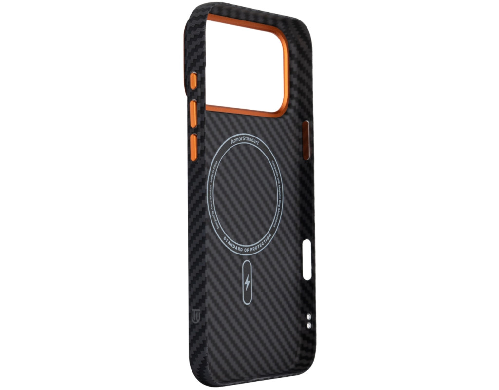 Чохол ArmorStandart LikeCarbon2 SE MagCase для Apple є продовженням серії LikeCarbon2 з виразним технічним акцентом. Модель зберігає стриману форму та практичну конструкцію, доповнену контрастними металевими елементами у виконанні SE. Корпус виготовлений із матового полікарбонату з текстурою карбонового волокна. Такий матеріал стійкий до подряпин, не збирає відбитки та зберігає стабільну форму при навантаженнях. Металева рамка навколо камери формує додатковий захисний контур, зменшуючи ризик пошкодження об’єктивів під час контакту з твердими поверхнями. Піднята зона камери обмежує прямий контакт лінз зі столом або іншими площинами. Металеві кнопки мають чіткий і рівномірний хід без люфтів, що забезпечує стабільну та передбачувану роботу під час натискання. Вбудовані магніти стандарту N52 формують точне магнітне кільце, яке надійно утримує смартфон у поєднанні з MagSafe-аксесуарами та сумісними тримачами, запобігаючи зміщенню під час використання. ArmorStandart LikeCarbon2 SE MagCase створений як функціональний захисний аксесуар із фокусом на матеріали, зносостійкість і продумані деталі, де кожен елемент має практичне призначення. Особливості: