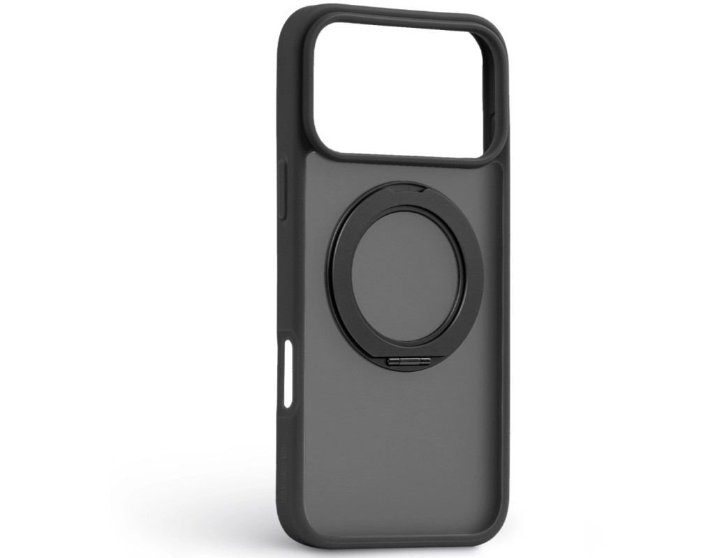 У центральній частині корпусу розташована поворотна підставка з кільцем, що обертається на 360°. Вона дозволяє використовувати смартфон у двох фіксованих положеннях: під кутом 35° для роботи з екраном і під кутом 60° для перегляду відео або відеодзвінків. Поворотний кронштейн має тонкий профіль і не створює додаткових виступів.