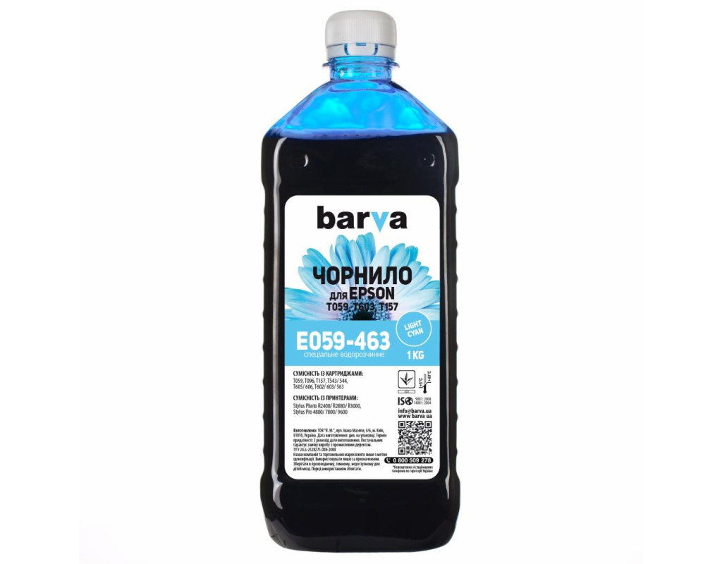 Чорнило Barva EPSON R2400 LIGHT CYAN 1 кг T0595 (E059-463)