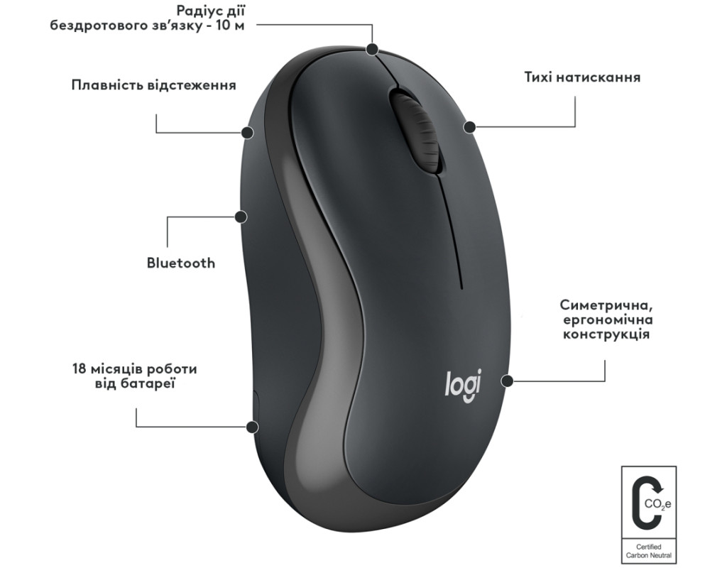 | Мишка Logitech M240 Silent Bluetooth Graphite (910-007119) — це ідеальний вибір для тих, хто цінує тишу і комфорт у роботі з комп'ютером. Завдяки безшумному дизайну, вона зменшує звук клацання на 90%, що допомагає покращити вашу концентрацію та зберегти спокій навколишнього середовища. Це особливо важливо для тих, хто часто працює у відкритих офісах або поїздах, де кожен зайвий шум стає неприємним фактором. Бездротове підключення за допомогою технології Bluetooth дозволяє звільнити робочий стіл від зайвих дротів. Вам більше не потрібно турбуватися про наявність USB-приймача, що робить підключення до пристроїв максимально простим і зручним. Миша має інтуїтивне підключення, яке здійснюється всього за кілька секунд. Крім того, ця мишка відрізняється компактними розмірами (99 х 60 х 39 мм), що робить її ідеальною для частих подорожей. Вона з легкістю поміститься навіть у найменшу сумочку або рюкзак, що дозволяє завжди мати під рукою надійний інструмент для роботи. Завдяки оптичному датчику роздільною здатністю до 1000 dpi, миша забезпечує точний і плавний рух курсора. Три функціональні кнопки роблять взаємодію з пристроєм інтуїтивно зрозумілою та зручною. Ергономічний дизайн забезпечує можливість використання як правою, так і лівою рукою, що робить її універсальним рішенням для будь-якого користувача. Однією з відмінних рис цієї миші є тривалий термін служби батареї. Завдяки функції енергозбереження, мишка може працювати до 18 місяців без заміни батареї, автоматично переходячи в режим сну, коли вона не використовується. Додатковою перевагою є великий радіус дії — надійна робота на відстані до 10 метрів від комп'ютера забезпечує свободу рухів та стабільне з'єднання. Цей продукт також відзначено екологічною сертифікацією — пластикові деталі виготовлено з переробленого пластику (48% для Graphite), що підтримує стійкість довкілля та підтверджує сертифікацію вуглецевої нейтральності. Обравши мишку Logitech M240 Silent, ви отримаєте надійного помічника, який стане ідеальним доповненням до вашого ноутбука, забезпечуючи комфорт і якість у кожному натисканні. |