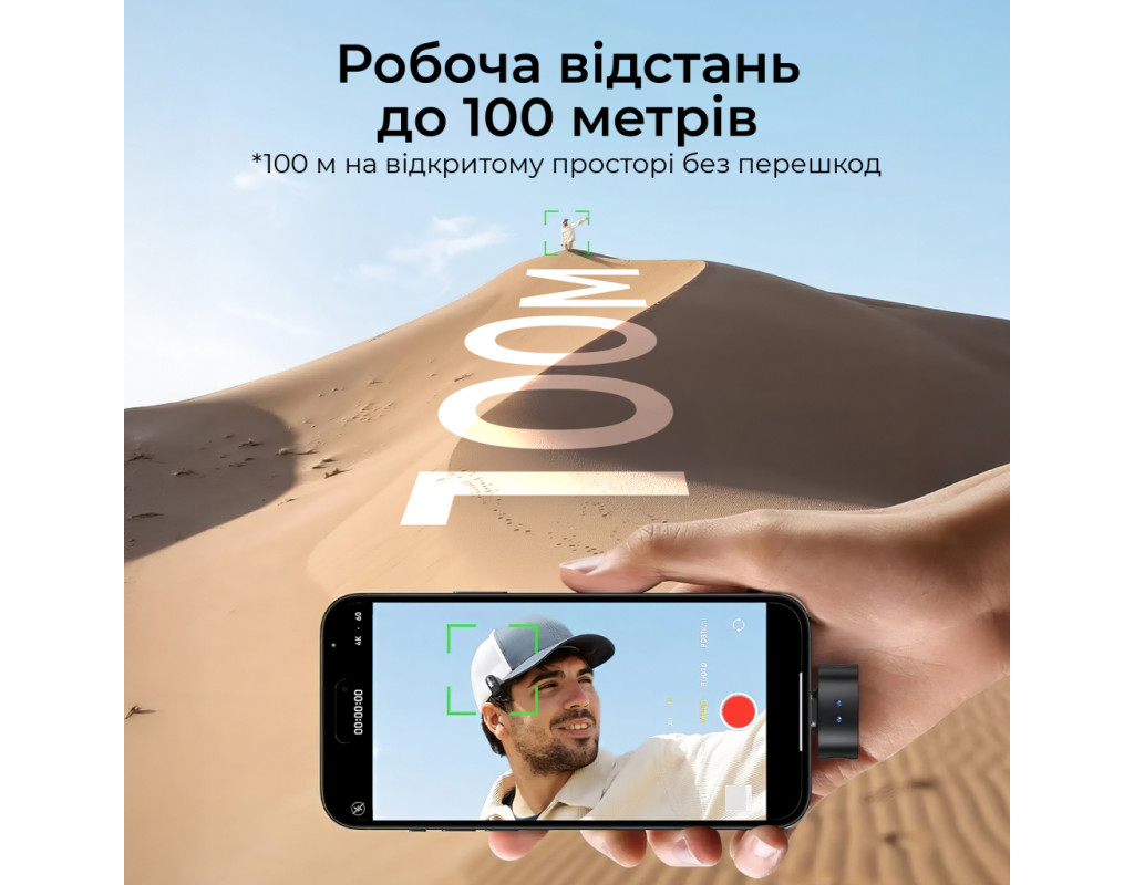 Сумісність: Працює з усіма пристроями — смартфонами (USB-C / Lightning), комп'ютерами, камерами та навіть динаміками. Підтримує одночасне підключення до 2 передавачів на 1 приймач.