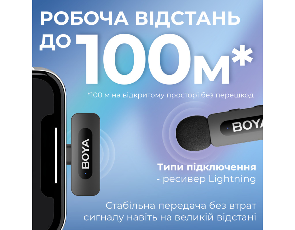 Максимальна простота та зручність. BOYA V працює одразу (Plug-and-Play): Не потрібні додатки, адаптери або складне налаштування Bluetooth. Просто підключіть приймач до роз'єму телефону, закріпіть мікрофон на одязі — і можна починати запис. Миттєве прослуховування запису. Можна швидко прослухати запис через динамік телефону, не відключаючи приймач, що економить час і не порушує робочий процес.