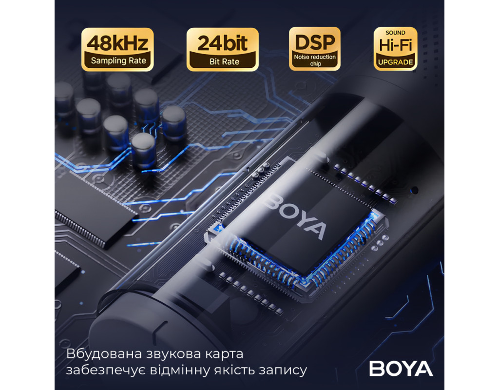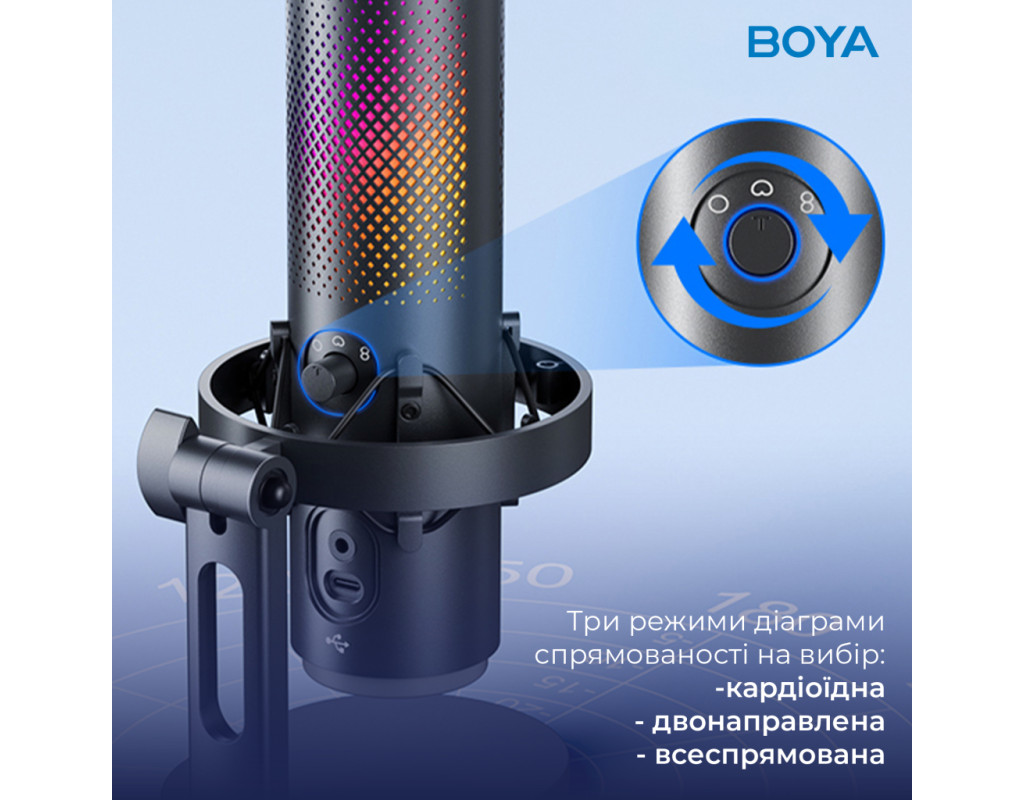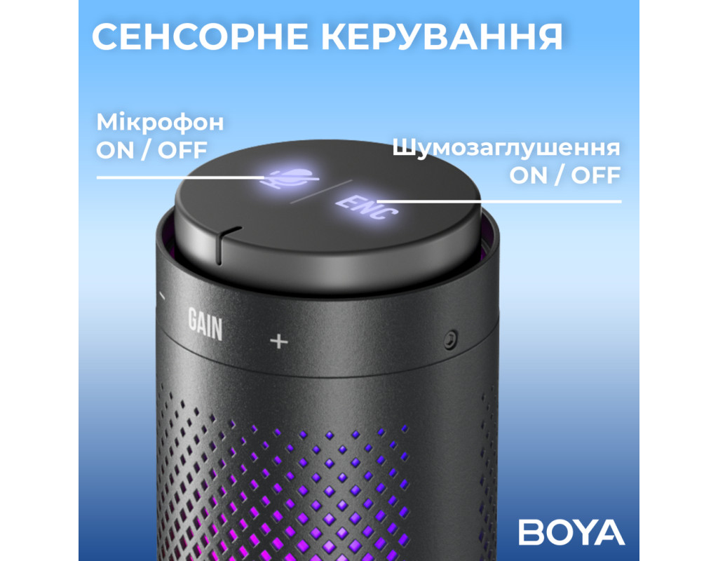 BOYA K9 - це сучасний настільний USB-мікрофон, що поєднує потужні технології запису, гнучке керування та вражаючий дизайн, стаючи ідеальним вибором для стрімерів, музикантів, подкастерів, геймерів і всіх, хто цінує чистий і якісний звук. Основою професійного звучання є вбудована Hi-Fi звукова карта, яка забезпечує запис високої роздільної здатності з частотою дискретизації 48 кГц і глибиною 24 біт. Ваш голос звучатиме природно, детально і без втрат.
