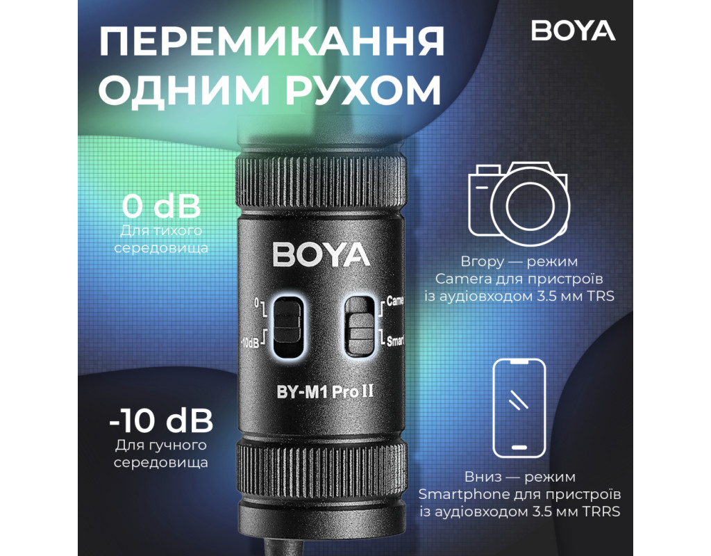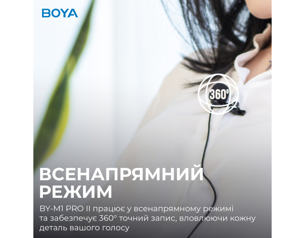 BOYA BY-M1 Pro II — це сучасний петличний конденсаторний мікрофон, створений для вимогливих користувачів, яким потрібна чітка передача голосу в будь-яких умовах. Завдяки унікальній комбінації довгого кабелю, всебічної сумісності та передової системи шумозаглушення, він стає ідеальним вибором для стрімерів, відеоблогерів, викладачів, журналістів та бізнес-фахівців.
