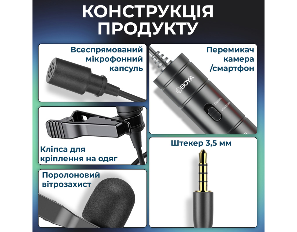 Дротовий петличний мікрофон Boyamic BY-M1S — це ваш надійний помічник для професійного запису голосу у будь-яких умовах. Чи ви знімаєте відеоблог, проводите інтерв'ю на вулиці, записуєте урок або берете участь у онлайн-конференції — BY-M1S забезпечить чисте, потужне та безшумне звучання, яке виділить ваш контент серед інших. Завдяки універсальному підключенню та простій конструкції він стане незамінним інструментом для творців контенту, відеографів, журналістів, викладачів та бізнесменів.