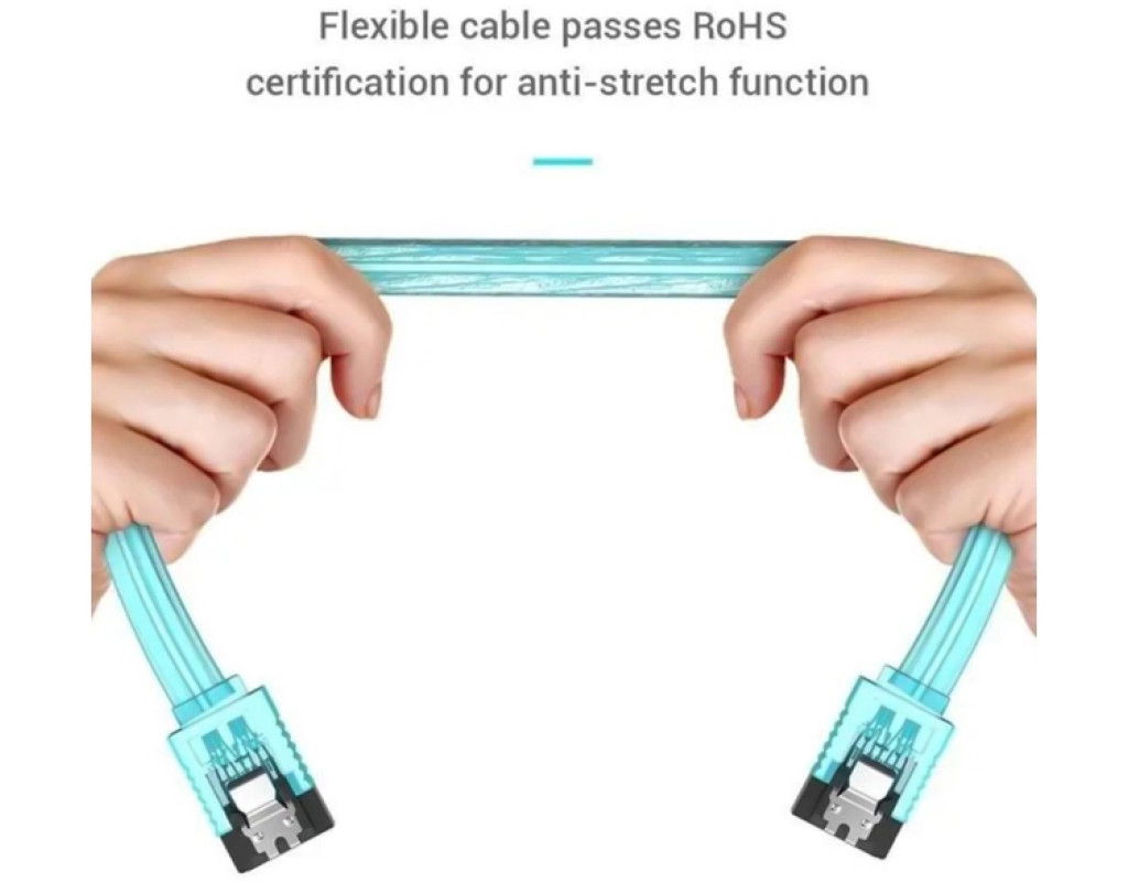 Vention SATA3.0 Cable 0.5M Blue (KDDSD) — кабель, спеціально розроблений для підключення материнських плат та контролерів хостів до внутрішніх жорстких дисків SATA та DVD-приводів. Нова ревізія SATA 3.0 відповідає швидкості передачі до 6 Гбіт/с, що вдвічі швидше, ніж SATA II. Подвійний дизайн затискачів для щільного з'єднання кабелю та материнської плати. Можна бути впевненим, що контакти надійно зафіксовані та не від'єднаються у непередбачуваний момент. Правий кутовий інтерфейс допомагає уникнути згинання кабелю, що продовжує його термін служби. До того ж, його дизайн розроблений таким чином, щоб Vention SATA3.0 Cable 0.5M Blue (KDDSD) можна було використовувати і у вузькому просторі. Гнучкий плоский кабель пройшов сертифікацію RoHS щодо функції протидії розтягуванню. Жодних сумнівів у його міцності та зносостійкості. |