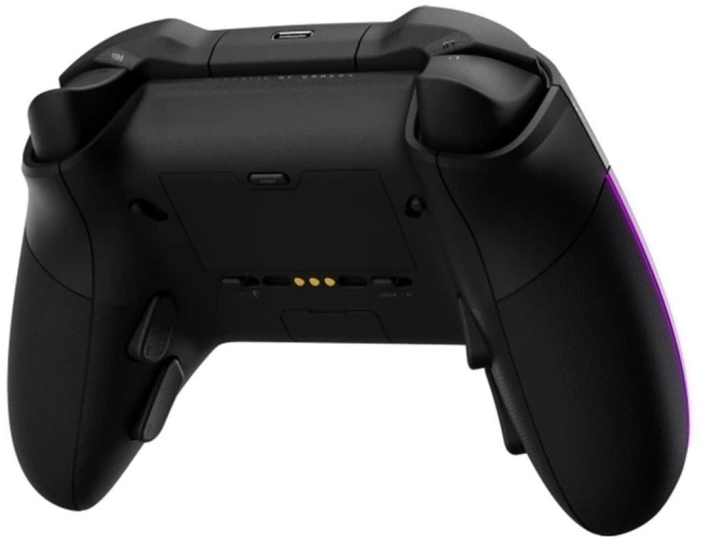 - Кнопки з мікроперемикачами: хрестовина, кнопки ABXY, задні кнопки і бампери з миттєвим спрацьовуванням і тактильною віддачею.