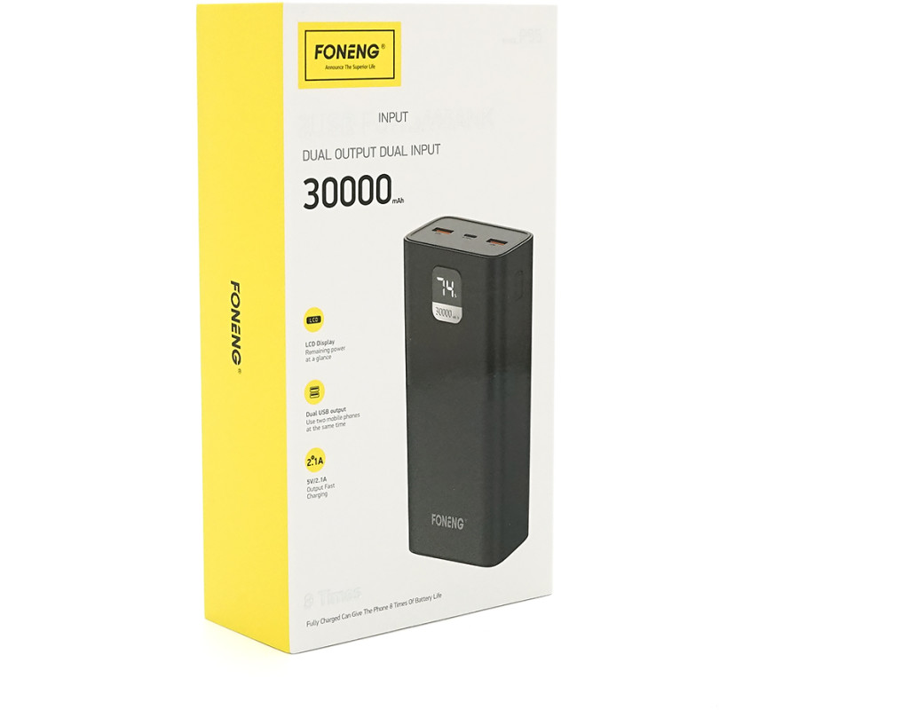 Power Bank FONENG P55 30000mAh, 2*USB+Tepe-C, Black, 0.580kg, Box