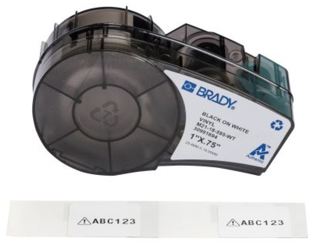 Стрічка для принтера етикеток Brady M21-18-595-WT, всепогодні, 25,4 мм х 19,05 мм, black on white, вініл, для M210, M211 (176811)