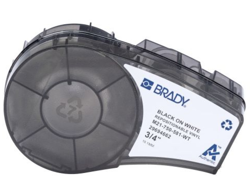 Стрічка для принтера етикеток Brady M21-750-581-WT, переміщувана етикетка, 19,05мм х 6.4м, black on white, вініл (152247)