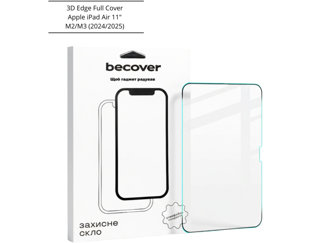 | "Преміальне загартоване скло 3D Edge Full Cover створене спеціально для нової лінійки iPad. Завдяки точному 3D-закругленню країв та повному покриттю екрану, скло максимально точно повторює форму дисплея, забезпечує комфорт під час використання та надійний захист від подряпин. Скло виготовлене з загартованого матеріалу з твердістю 9H, має оптимальну прозорість та не спотворює кольори, зображення чи чутливість сенсора. Повне клейове покриття Full Glue гарантує відсутність повітряних плям, високу чутливість торкання та надійну фіксацію по всій площині екрану. Заокруглений край 3D Edge забезпечує плавний перехід між склом та рамкою дисплея, завдяки чому скло не дряпає пальці, не відходить по кутах та сумісне з чохлами. Основні переваги: 3D Edge Full Cover — повне покриття дисплея з плавним заокругленням країв Full Glue — клейове покриття по всій площі для точної фіксації Твердість 9H — захист від подряпин та дрібних пошкоджень Прозорість Ultra Clear — без спотворення кольорів і чіткості Повна сумісність із чутливістю сенсора Сумісне з більшістю чохлів Антискол — захисний шар зменшує ризик уламків при ударі Встановлення без бульбашок Сумісність: Apple iPad Air 11.0" M2 (2024) / Apple iPad Air 11.0" M3 (2025) Комплектація: Захисне скло 3D Edge Full Cover Набір для встановлення (серветка, волога/суха, стікери)" |