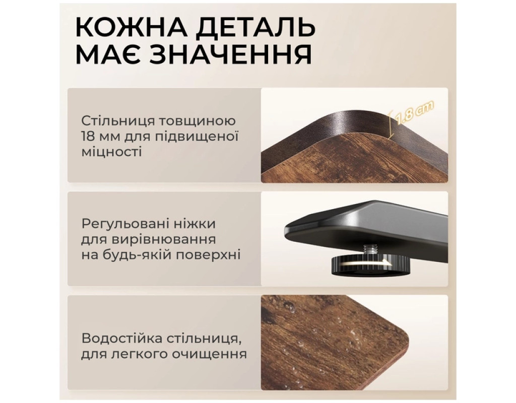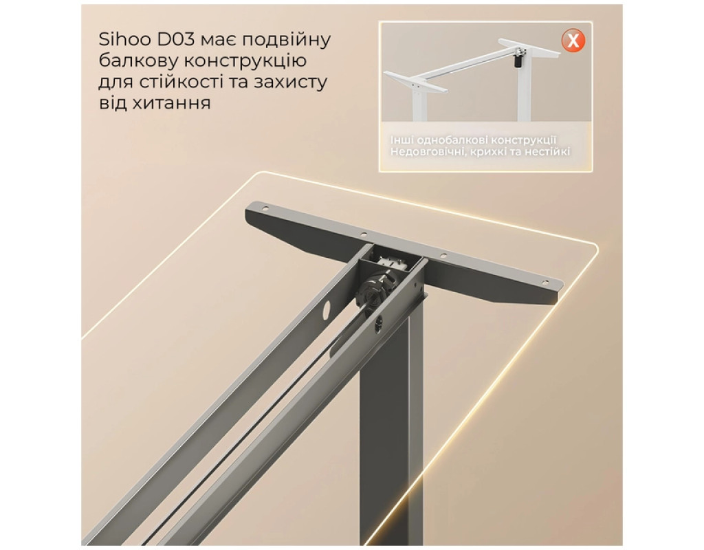 | Стіл Sihoo D03 — це сучасний стіл з електрорегулюванням висоти, який дозволяє легко перемикатися між сидінням і стоянням протягом робочого дня. Він плавно регулює висоту від 72 см до 120 см за допомогою тихого безщіткового двигуна, сприяючи кращому самопочуттю та продуктивності. Містка стільниця розміром 140 × 70 см, виготовлена з міцної плити товщиною 18 мм, забезпечує багато місця для моніторів, ноутбука та інших робочих інструментів. Надійна конструкція з подвійною балкою забезпечує виняткову стійкість, витримуючи вагу до 60 кг без хиткості на будь-якій висоті. Важливим елементом безпеки є технологія захисту від зіткнень, яка автоматично зупиняє та відводить стіл, якщо виявляє перешкоду на шляху руху. Під час роботи стіл видає менше ніж 50 дБ шуму, що створює спокійне середовище без відволікаючих звуків. Крім того, за допомогою зручної панелі керування ви можете зберегти до чотирьох налаштувань висоти в пам’яті для миттєвого перемикання між улюбленими положеннями однією кнопкою. Збірка столу проста і займає менше 20 хвилин, що дозволяє швидко почати роботу. |