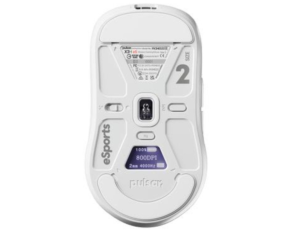 Точність нового рівня з OLED-керуванням PULSAR X2H eS створена як інструмент для змагального геймінгу, де кожна деталь працює на результат. Головною особливістю моделі є вбудований OLED-дисплей на нижній частині корпусу, який дає змогу змінювати ключові параметри без встановлення будь-якого програмного забезпечення. Прямо з миші можна перевірити рівень заряду акумулятора, налаштувати DPI, частоту опитування, LOD, Motion Sync та debounce time. Такий підхід робить налаштування швидкими, інтуїтивними й незалежними від конкретного ПК або системи.