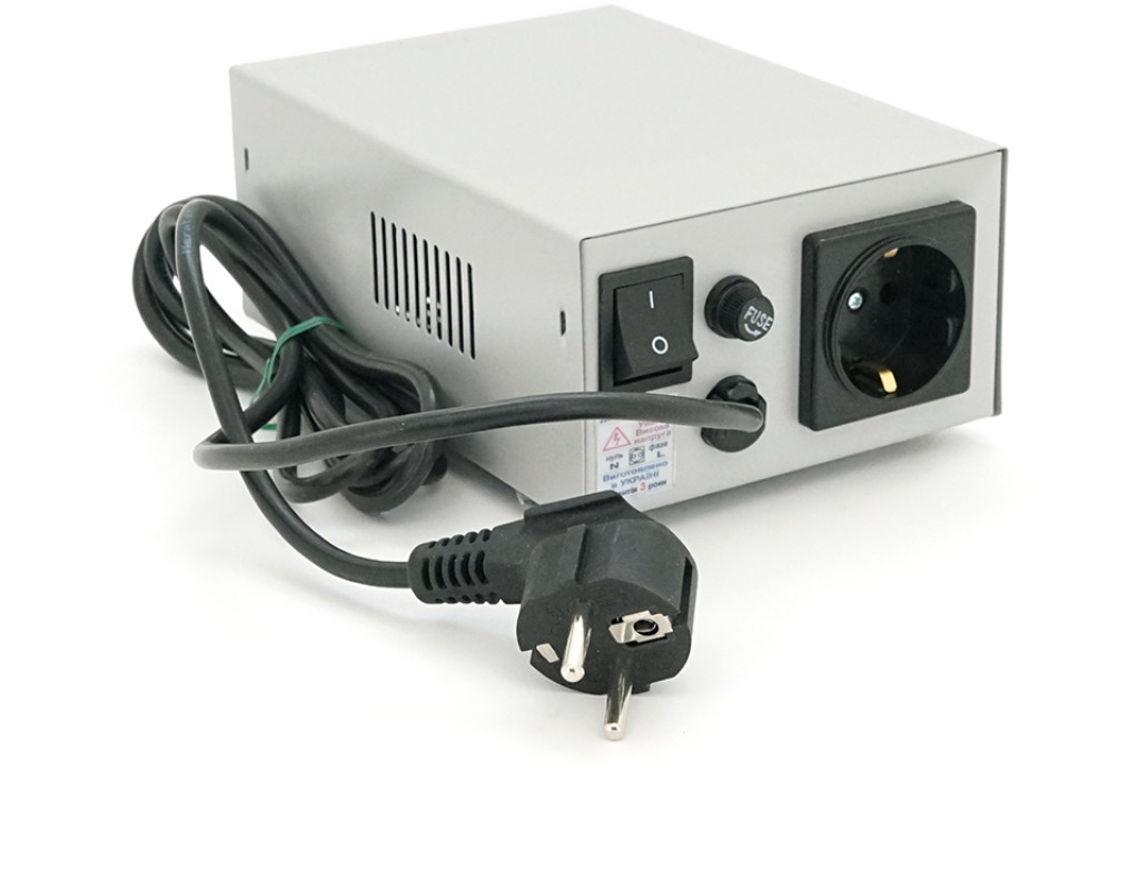 | Технические характеристики: Изготовлено согласно ТУ У 31.1-13800239-002:2005 / 2011 Да Допустимое длительное напряжение: 430 В Рабочий диапазон входного напряжения (Uвх): 145-280 В Номинальное значения выходного напряжения при Uвх = 160...280 В: 220 В±14В Номинальное значения выходного напряжения при Uвх = 145...160 В: 192-210 Максимальная постоянная мощность нагрузки в робочем диапазоне: 250 Вт Максимальная кратковременная мощность нагрузки: 900 Вт Форма выходного напряжения: синусоидальная Время реакции на изминения входного напряжения: 0,04 с Время отключения при высоковольтном импульсе в сети: 0,01 с Время срабатывания защиты при нагрузке от 250 Вт до 900 Вт: 2,67 с Время включения после аварии в сети: 5 с Диапазон робочих температур: 5-35°С Температура срабатывания тепловой защиты: 105°С Погрешность индикации входного и выходного напряжения: ±1% Маса изделия: 2 кг Цвет корпуса: серый металик Габариты: 125 х 80 х 192 мм |