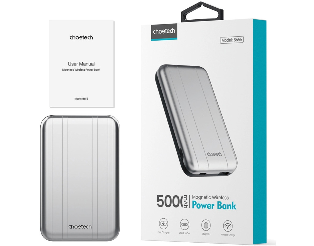 УМБ Choetech Magnetic Wireless 5000mAh USB-A,USB-C In/Out B655 mini silver