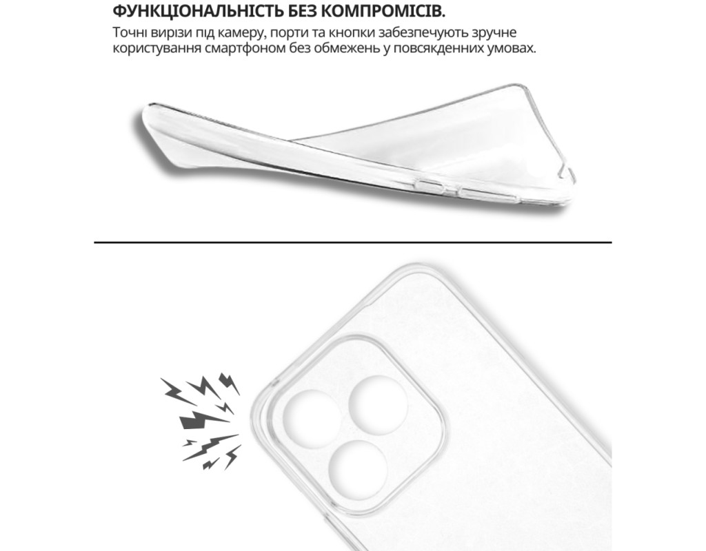 | "Тонкий і еластичний силіконовий чохол забезпечує надійний захист вашого смартфона від механічних пошкоджень, запобігаючи появі подряпин на корпусі. Завдяки високій якості матеріалу, чохол зберігає свою цілісність — він не рветься та не тріскається навіть при тривалому використанні. Чохол легко встановлюється, щільно прилягає до поверхні смартфона, не залишаючи повітряних зазорів, які могли б накопичувати пил, бруд або вологу. Легкий і непомітний, він не додає зайвого об'єму чи ваги вашому пристрою, забезпечуючи надійний захист від ударів, пошкоджень і вологи. Усі вирізи в чохлі точно відповідають роз'ємам і функціональним кнопкам смартфона, що гарантує зручне користування в будь-яких умовах. Силіконове покриття не ковзає, щільно облягає металевий корпус телефону та не перешкоджає доступу до роз'ємів для зарядки, USB-кабелю, гарнітури чи сканера відбитків пальців. Цей силіконовий чохол стане ідеальним вибором для тих, хто шукає стильний і практичний аксесуар для свого смартфона." |