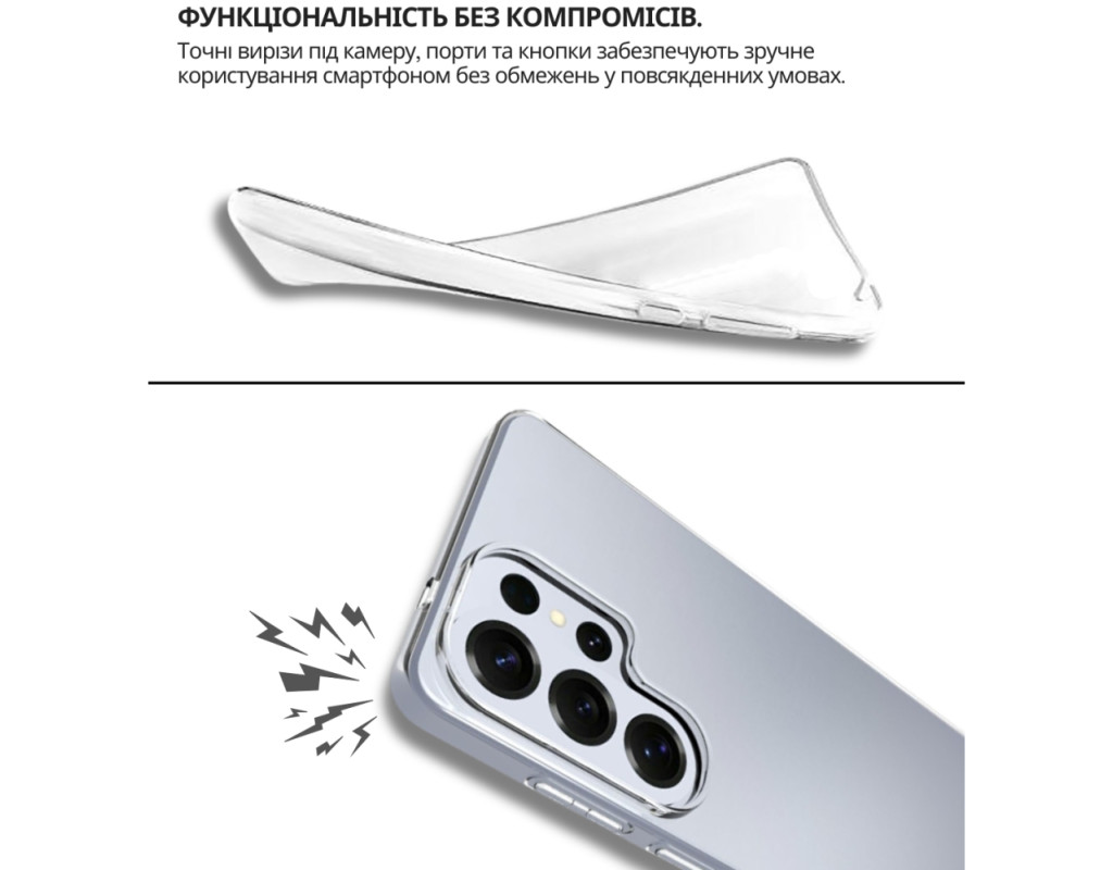 | "Тонкий і еластичний силіконовий чохол забезпечує надійний захист вашого смартфона від механічних пошкоджень, запобігаючи появі подряпин на корпусі. Завдяки високій якості матеріалу, чохол зберігає свою цілісність — він не рветься та не тріскається навіть при тривалому використанні. Чохол легко встановлюється, щільно прилягає до поверхні смартфона, не залишаючи повітряних зазорів, які могли б накопичувати пил, бруд або вологу. Легкий і непомітний, він не додає зайвого об'єму чи ваги вашому пристрою, забезпечуючи надійний захист від ударів, пошкоджень і вологи. Усі вирізи в чохлі точно відповідають роз'ємам і функціональним кнопкам смартфона, що гарантує зручне користування в будь-яких умовах. Силіконове покриття не ковзає, щільно облягає металевий корпус телефону та не перешкоджає доступу до роз'ємів для зарядки, USB-кабелю, гарнітури чи сканера відбитків пальців. Цей силіконовий чохол стане ідеальним вибором для тих, хто шукає стильний і практичний аксесуар для свого смартфона." |