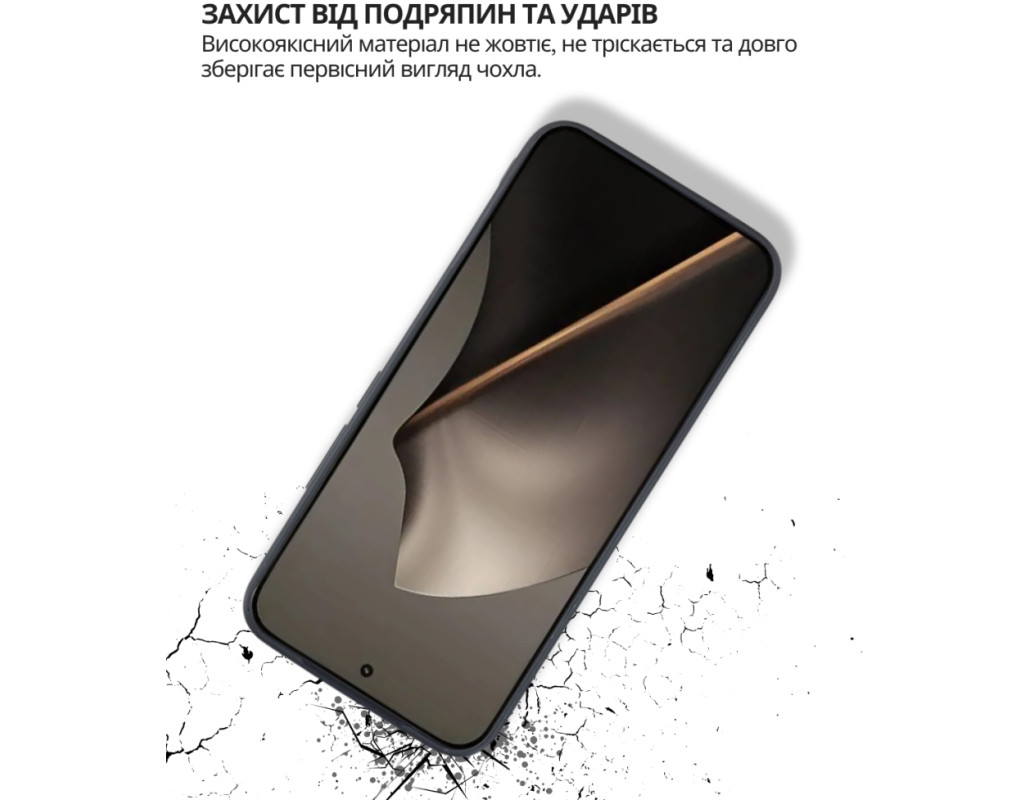 | "Тонкий і еластичний силіконовий чохол забезпечує надійний захист вашого смартфона від механічних пошкоджень, запобігаючи появі подряпин на корпусі. Завдяки високій якості матеріалу, чохол зберігає свою цілісність — він не рветься та не тріскається навіть при тривалому використанні. Чохол легко встановлюється, щільно прилягає до поверхні смартфона, не залишаючи повітряних зазорів, які могли б накопичувати пил, бруд або вологу. Легкий і непомітний, він не додає зайвого об'єму чи ваги вашому пристрою, забезпечуючи надійний захист від ударів, пошкоджень і вологи. Усі вирізи в чохлі точно відповідають роз'ємам і функціональним кнопкам смартфона, що гарантує зручне користування в будь-яких умовах. Силіконове покриття не ковзає, щільно облягає металевий корпус телефону та не перешкоджає доступу до роз'ємів для зарядки, USB-кабелю, гарнітури чи сканера відбитків пальців. Цей силіконовий чохол стане ідеальним вибором для тих, хто шукає стильний і практичний аксесуар для свого смартфона." |