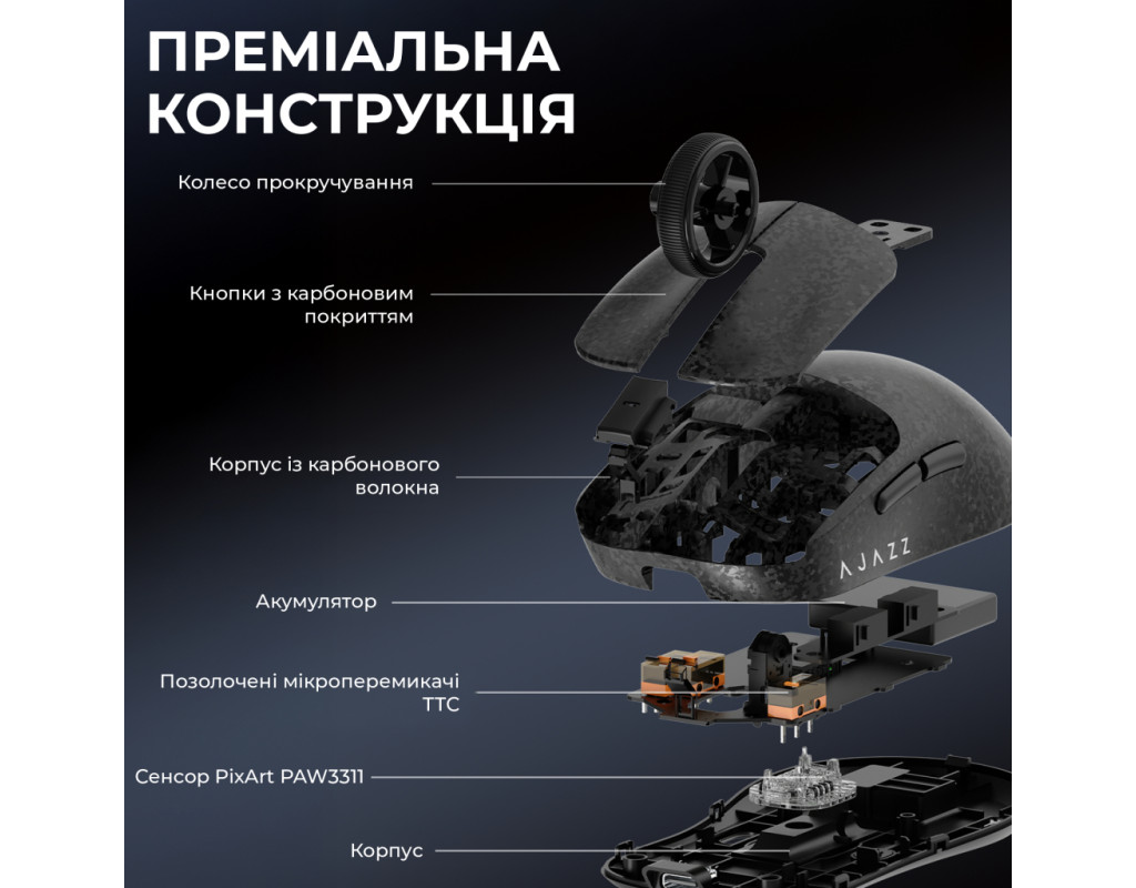 індикатор рівня заряду, підходить для лівші, програмовані кнопки, регулювання чутливості |