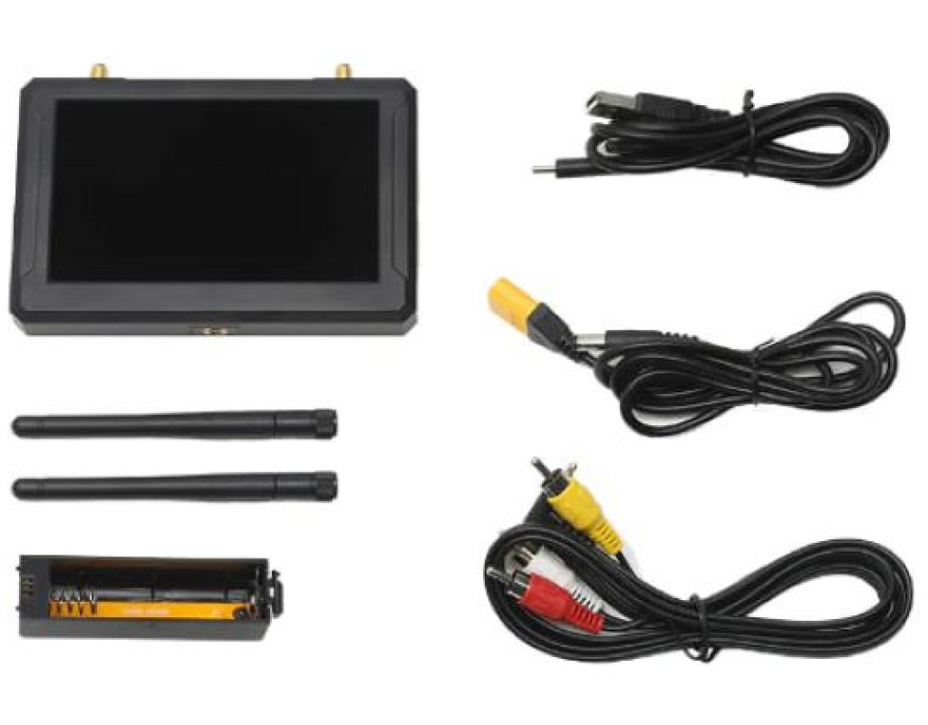 КОМПЛЕКТАЦІЯ: 1x Монітор Skyzone M5 DVR 5.8GHz 56CH 2х 5.8GHz Антена RPSMA male 2х AV cable 1х XT60-DC cable 1x Usb type-c cable
