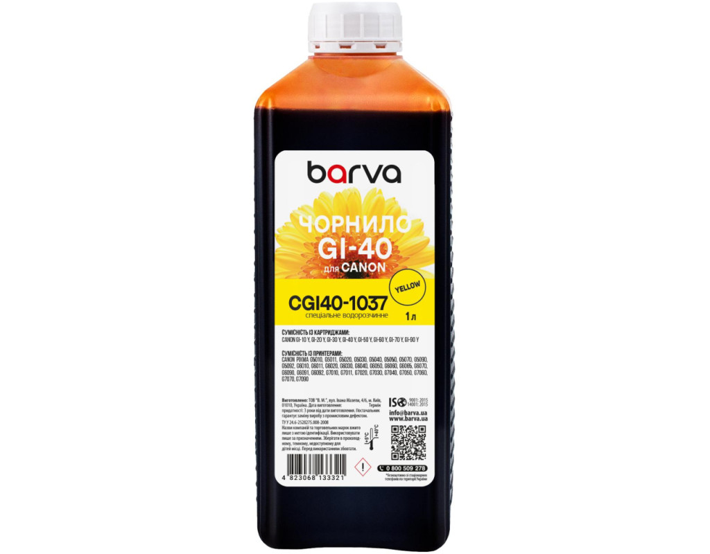 | Більшість з нас чули, що на відміну від лазерної техніки, яка формує зображення за допомогою тонера, струменева техніка використовує для друку спеціальні чорнила (краска для принтерів). Чорнило для Canon GI-40 Y спеціальне 1 л, водорозчинне, жовте Barva (CGI40-1037) використовується переважно для заправки ПЗК та СБПЧ. Чорнила CGI40-1037 Barva мають офіційну гарантію від виробника – ТОВ "В.М.". При виборі чорнила для принтерів Вам також необхідно звернути увагу на колір картриджа, який плануєте заправляти. Дані чорнила Barva мають колір – yellow (жовтий). Виробник гарантує безперебійну роботу чорнил протягом всього терміну використання, який складає – 3 роки. Тип чорнил CGI40-1037 Barva – Водорозчинні. Українська компанія ТОВ «В.М.» займається виробництвом чорнил під торговою маркою Barva вже багато років. На базі власної лабораторії відбувається як розробка нових формул, так і неперервний контроль якості продукції, що випускається. При виробництві чорнил виробник слідує стандартам ISO 9001:2015 та ISO 14001:2015. Чорнила Canon ТМ Barva повністю сумісні не тільки з чорнилами ТМ Patron, але й з чорнилами інших виробників. Для досягнення оптимального результату в передачі кольору та стійкості до світла ми рекомендуємо використовувати комбінацію – Фотопапір для струменевого друкуBarva + чорнила Barva. Дана фарба для принтера Barva має фасовку – 1 л: Фасовки 1 кг/1 л/18 кг будуть зручними для сервісних центрів або користувачів, які часто стикаються з необхідністю заправки картриджа або резервуарів друкуючих пристроїв.. Також рекомендуємо Вам звернути увагу на ще один варіант фасовки для сервісних центрів– Service-Pack. Ви можете купити Чорнило для Canon GI-40 Y спеціальне 1 л, водорозчинне, жовте Barva (CGI40-1037) в нашому інтернет-магазині з доставкою по Києву та всій Україні. |