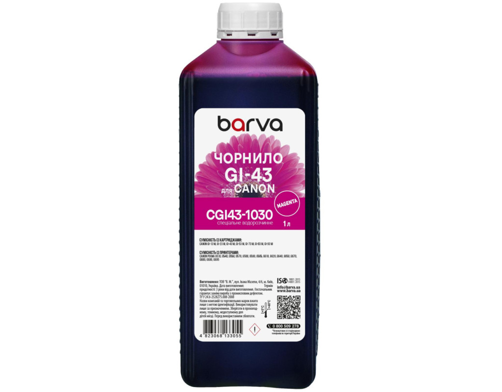 | Більшість з нас чули, що на відміну від лазерної техніки, яка формує зображення за допомогою тонера, струменева техніка використовує для друку спеціальні чорнила (краска для принтерів). Чорнило для Canon GI-43 M спеціальне 1 л, водорозчинне, пурпурове Barva (CGI43-1030) використовується переважно для заправки ПЗК та СБПЧ. Чорнила CGI43-1030 Barva мають офіційну гарантію від виробника – ТОВ "В.М.". При виборі чорнила для принтерів Вам також необхідно звернути увагу на колір картриджа, який плануєте заправляти. Дані чорнила Barva мають колір – magenta (пурпурний). Виробник гарантує безперебійну роботу чорнил протягом всього терміну використання, який складає – 3 роки. Тип чорнил CGI43-1030 Barva – Водорозчинні. Українська компанія ТОВ «В.М.» займається виробництвом чорнил під торговою маркою Barva вже багато років. На базі власної лабораторії відбувається як розробка нових формул, так і неперервний контроль якості продукції, що випускається. При виробництві чорнил виробник слідує стандартам ISO 9001:2015 та ISO 14001:2015. Чорнила Canon ТМ Barva повністю сумісні не тільки з чорнилами ТМ Patron, але й з чорнилами інших виробників. Для досягнення оптимального результату в передачі кольору та стійкості до світла ми рекомендуємо використовувати комбінацію – Фотопапір для струменевого друкуBarva + чорнила Barva. Дана фарба для принтера Barva має фасовку – 1 л: Фасовки 1 кг/1 л/18 кг будуть зручними для сервісних центрів або користувачів, які часто стикаються з необхідністю заправки картриджа або резервуарів друкуючих пристроїв.. Також рекомендуємо Вам звернути увагу на ще один варіант фасовки для сервісних центрів– Service-Pack. Ви можете купити Чорнило для Canon GI-43 M спеціальне 1 л, водорозчинне, пурпурове Barva (CGI43-1030) в нашому інтернет-магазині з доставкою по Києву та всій Україні. |