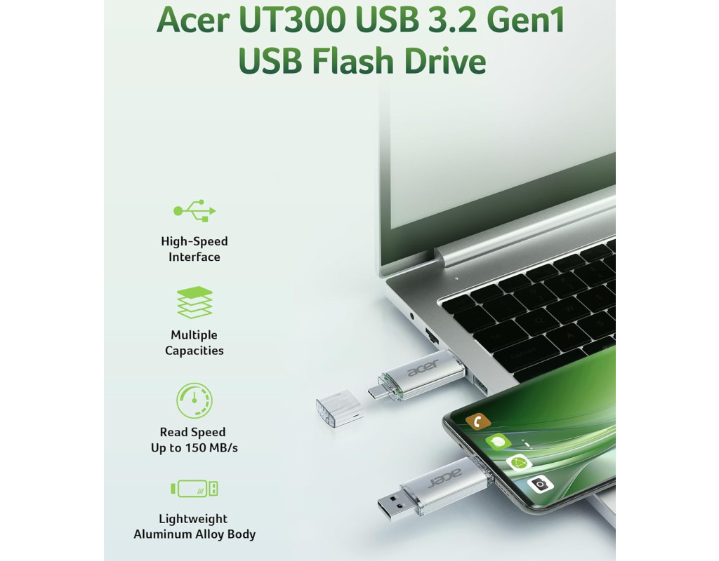 | USB Flash Acer UT300 128GB Dual Drive USB-C & USB-A, Retail |